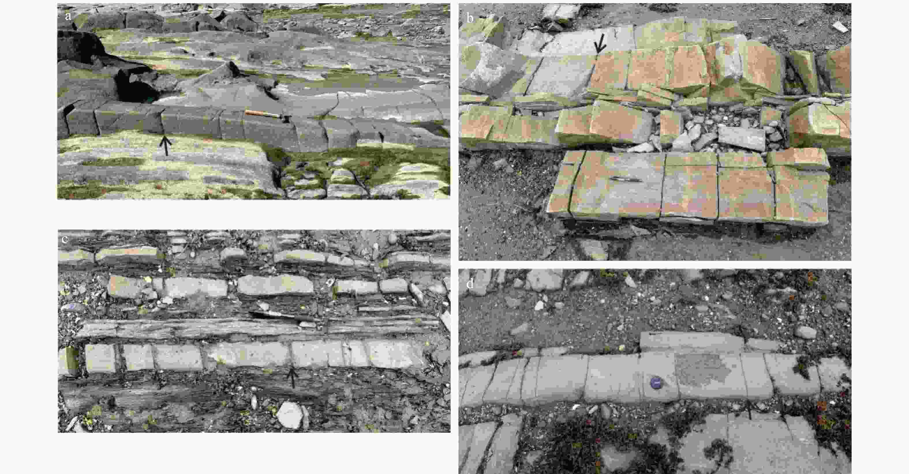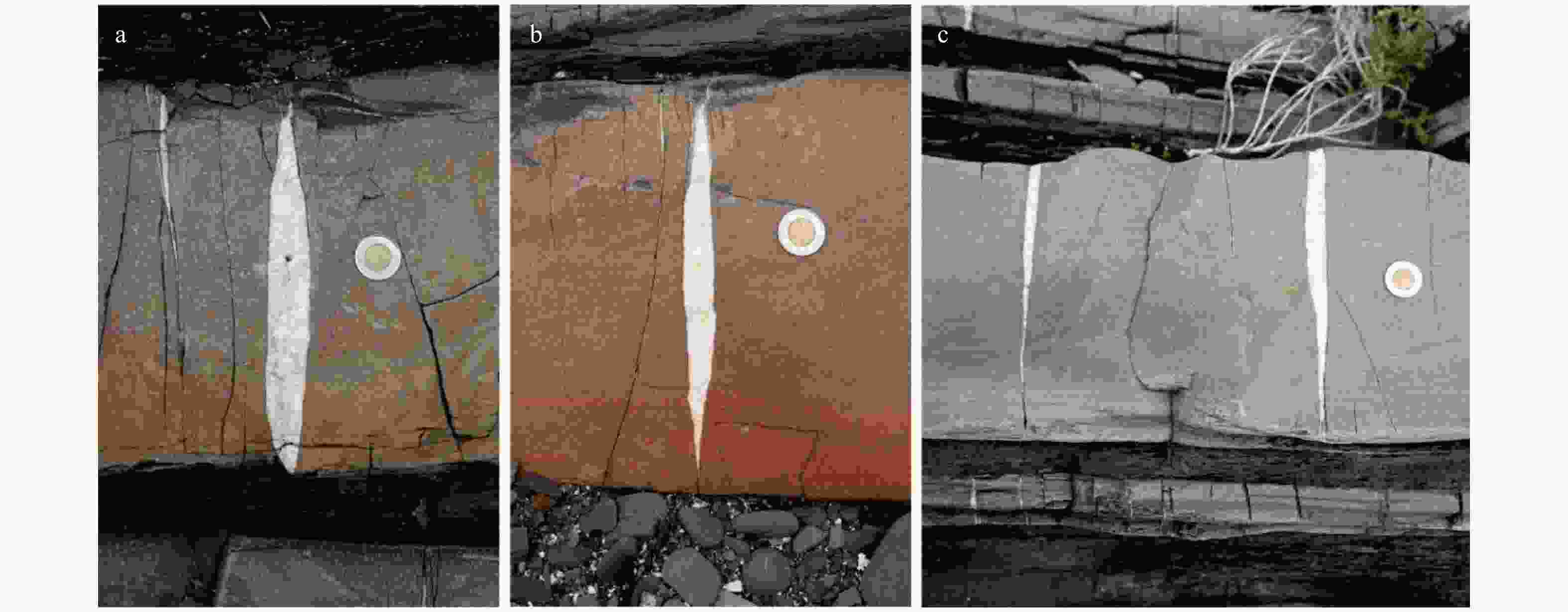图 12 加拿大魁北克 Humber 构造带内杂砂岩层中的层控碳酸盐岩脉,岩脉既可呈透镜状也可呈半透镜状