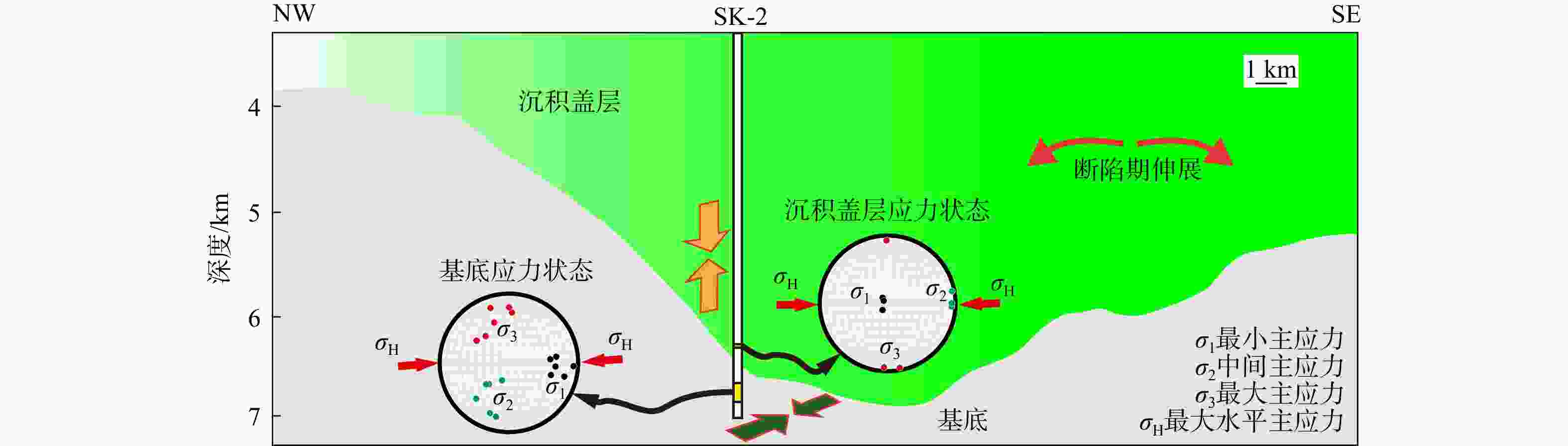 图  7  松辽盆地沉积盖层和基底实测三维地应力状态(Wang et al., 2020;王斌等,2024