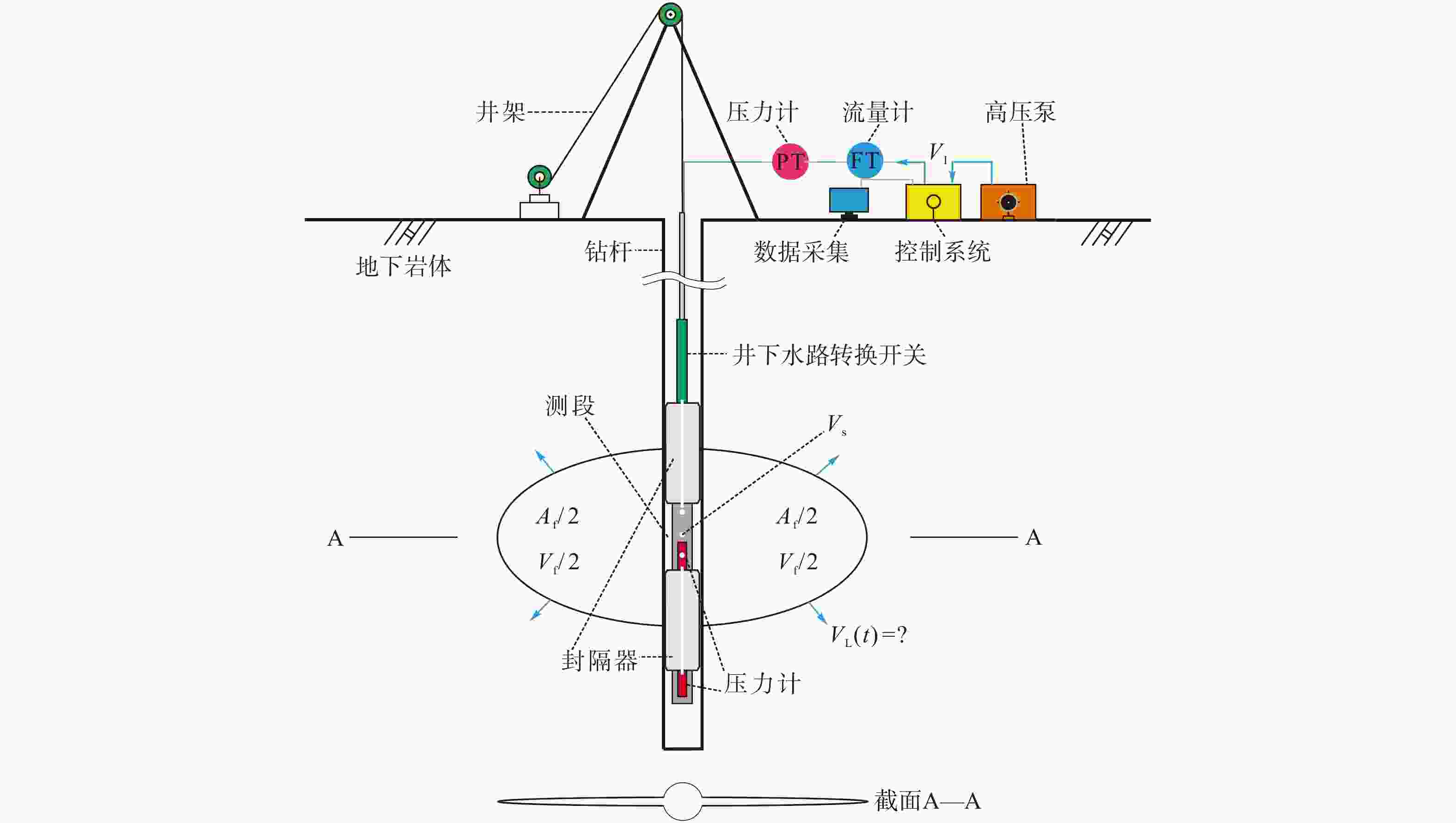 Figure 1. A simplified sketch of HF test equipment setup and the borehole–fracture–formation system