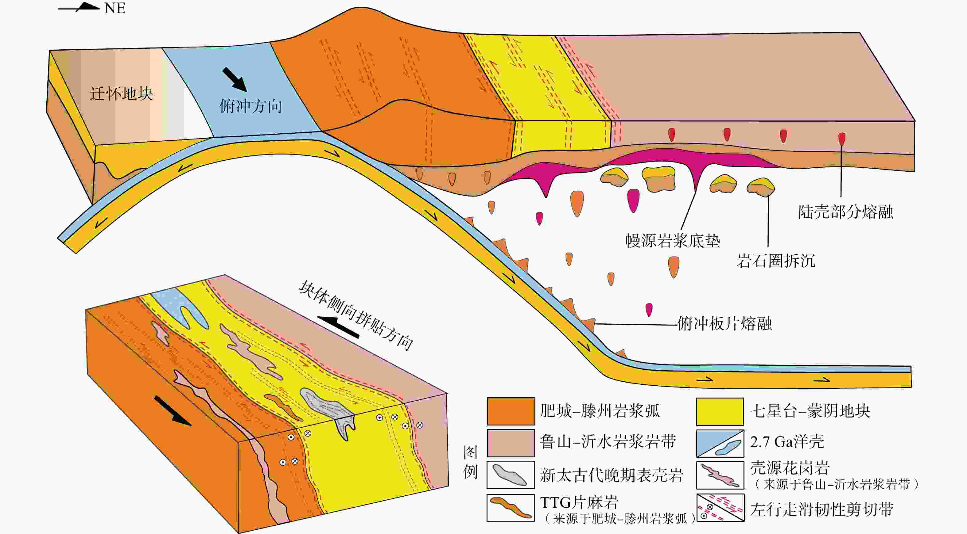 摘要: 地球早期地壳的增生和演化是早前寒武纪研究的核心科学问题。华北克拉通作为全球最古老的克拉通之一,新太古代晚期(2.50~2.48 Ga)经历了复杂的克拉通化过程并伴随强烈的地壳增生和改造。鲁西花岗−绿岩带位于华北克拉通东部,已有的岩石学、地球化学、年代学和构造变形研究显示,鲁西地区发育一系列指示新太古代晚期地壳增生的证据,包括以肥城‒滕州岩浆弧和新太古代晚期变质火山岩为代表的陆缘弧和岛弧岩浆岩、以鲁山‒沂水岩浆岩带为代表的后碰撞壳源岩浆记录、新太古代晚期变沉积岩所代表的弧后盆地沉积以及板块斜向汇聚导致的大型走滑剪切变形。出露于鲁西地区中部的>2.60 Ga的英云闪长岩、奥长花岗岩、花岗闪长岩(TTG岩系)和表壳岩组合代表一个与胶辽地块具有明显亲缘性的古老陆块。因此,鲁西花岗−绿岩带是一个位于胶辽地块西缘的增生型造山带,即鲁西造山带。弧−陆高角度斜向碰撞和巨量幔源岩浆底垫分别代表了胶辽地块西缘水平和垂向地壳增生。该造山带在新太古代到古元古代末期经历了初始洋壳形成、俯冲到陆内伸展等构造演化阶段。新太古代晚期,华北克拉通东部胶辽地块周缘发生了广泛的地壳增生作用,这一过程受控于以板块热俯冲为特征的早期板块构造体制。Abstract: