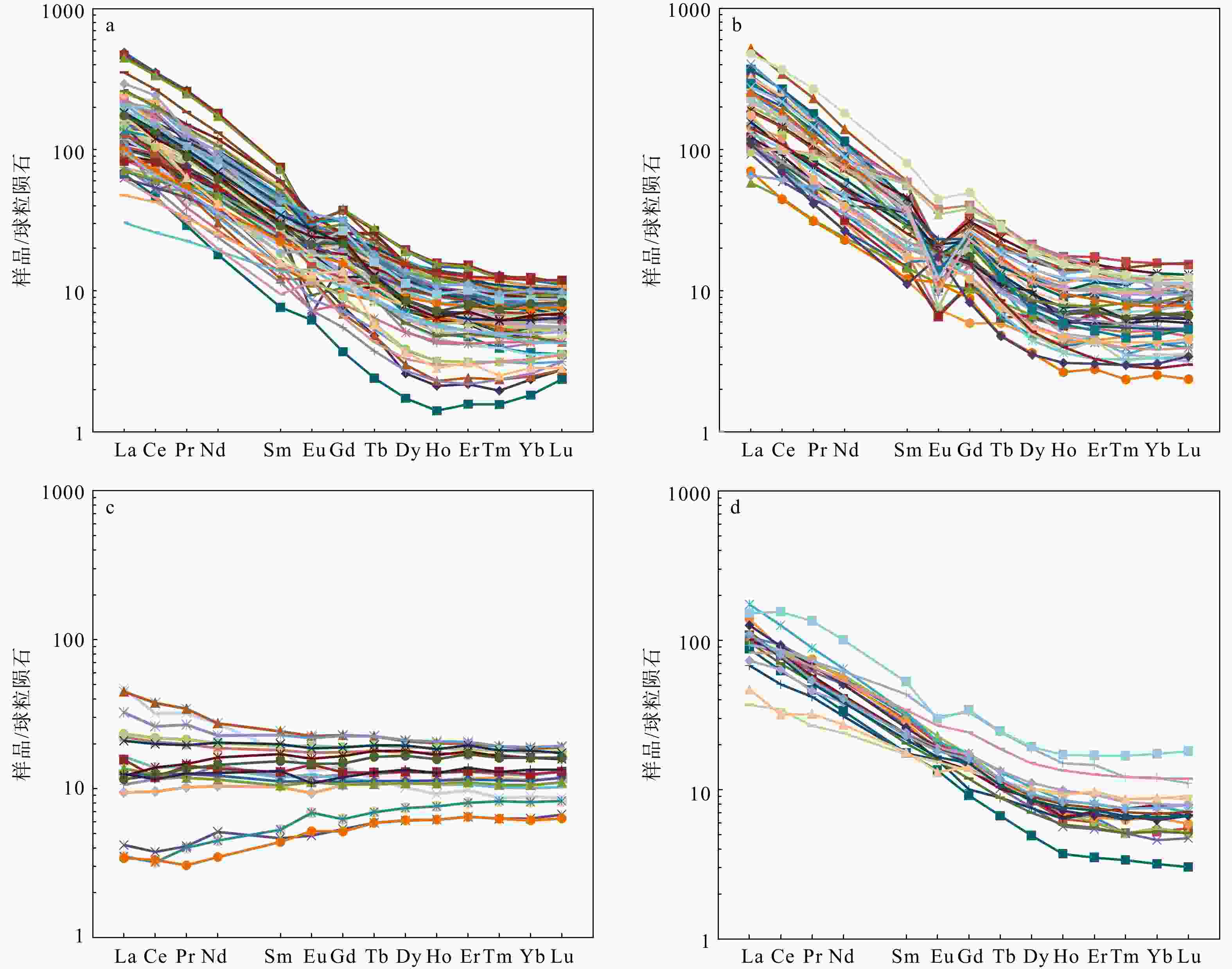 图 5 球粒陨石标准化稀土元素配分曲线(数据来源同图4)