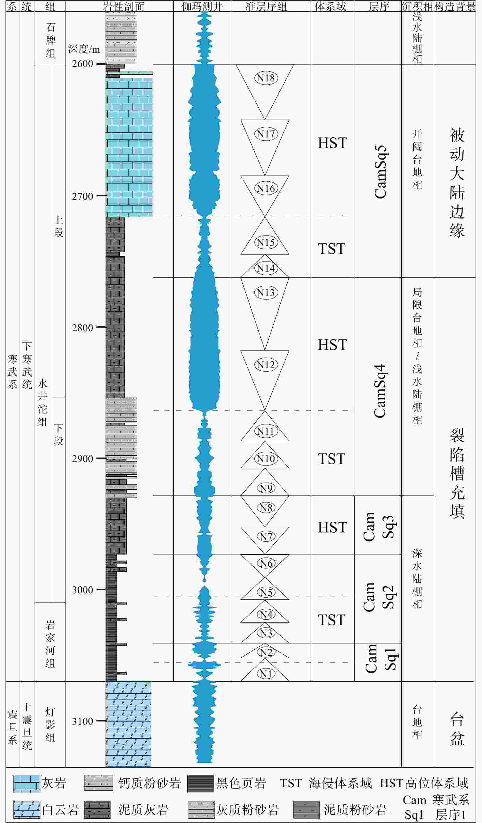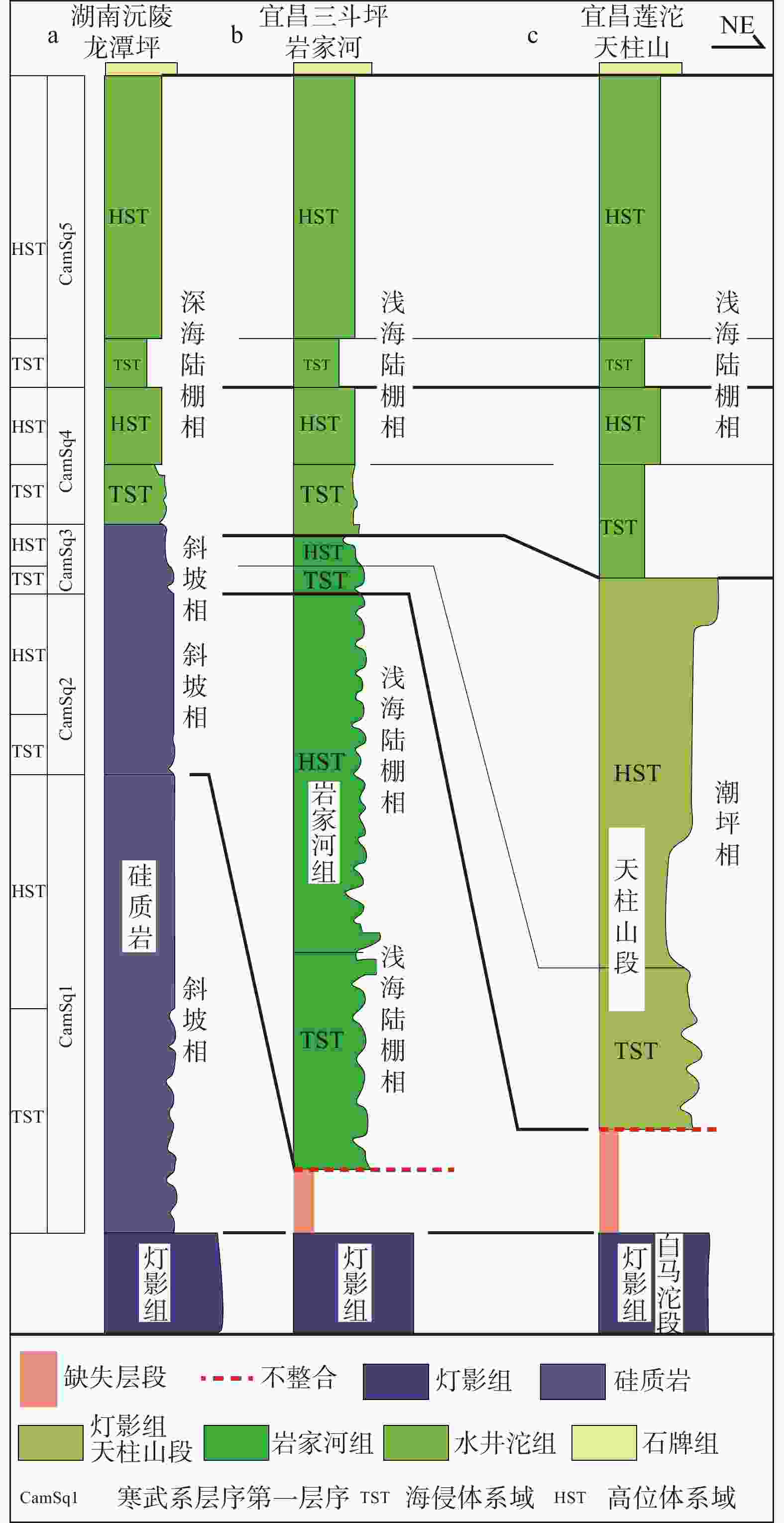 图 4 中扬子地区下寒武统层序地层划分柱状图(剖面位置见图1;据王传尚等,2012修改)