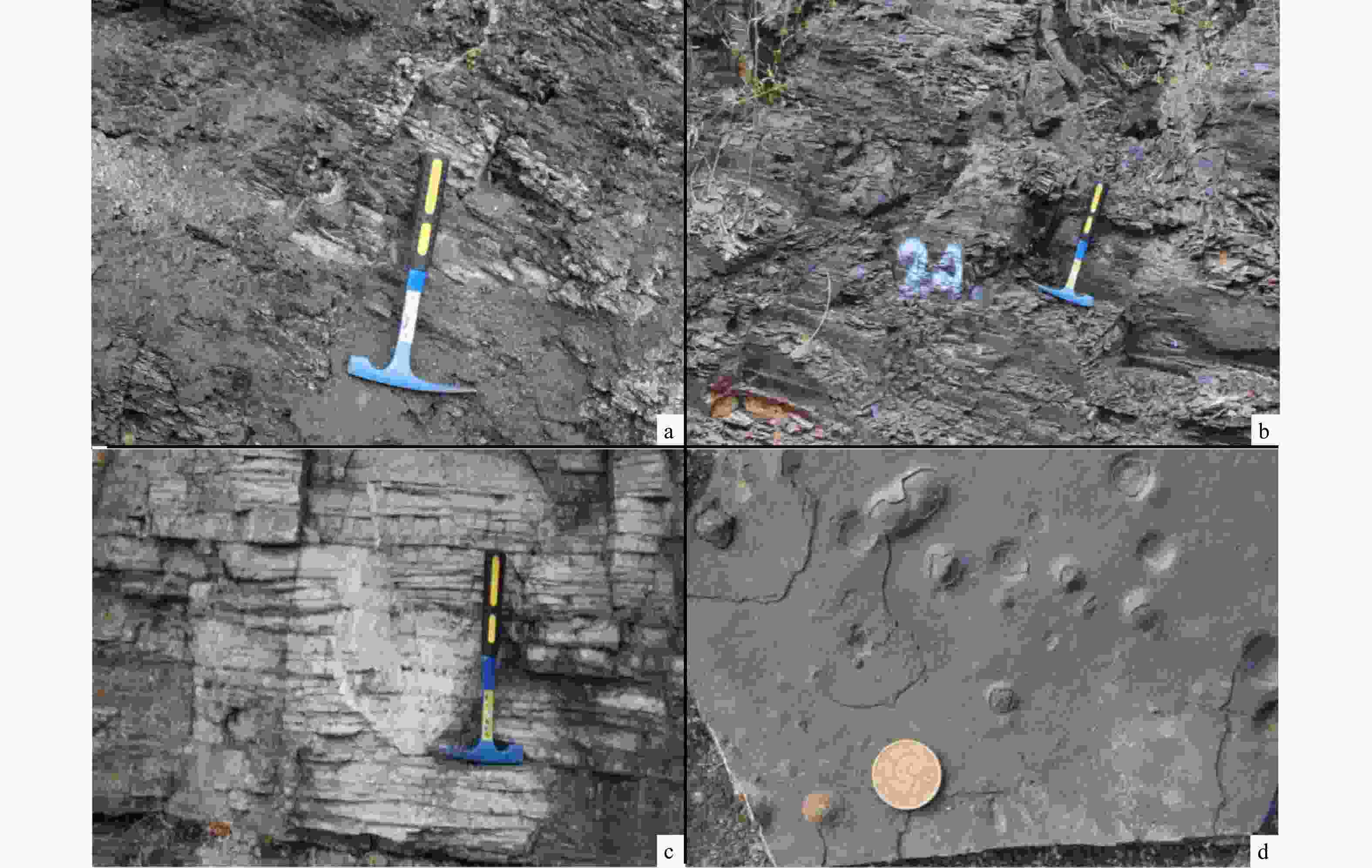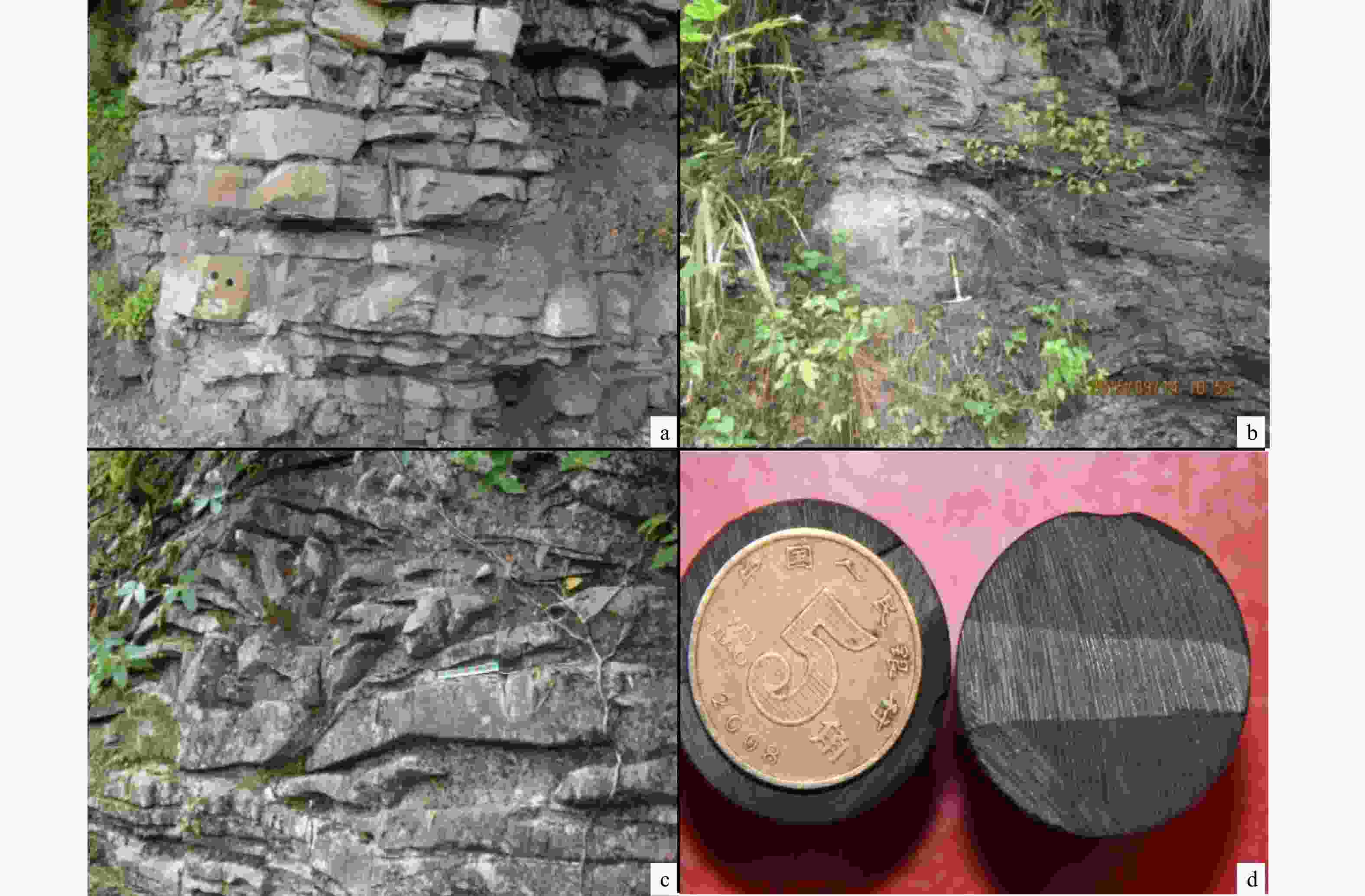 a—陡二段黑色页岩;b—陡四段黑色页岩;c—陡三段浅灰色含泥质条带灰岩;d—陡三段中白云质泥岩中燧石结核