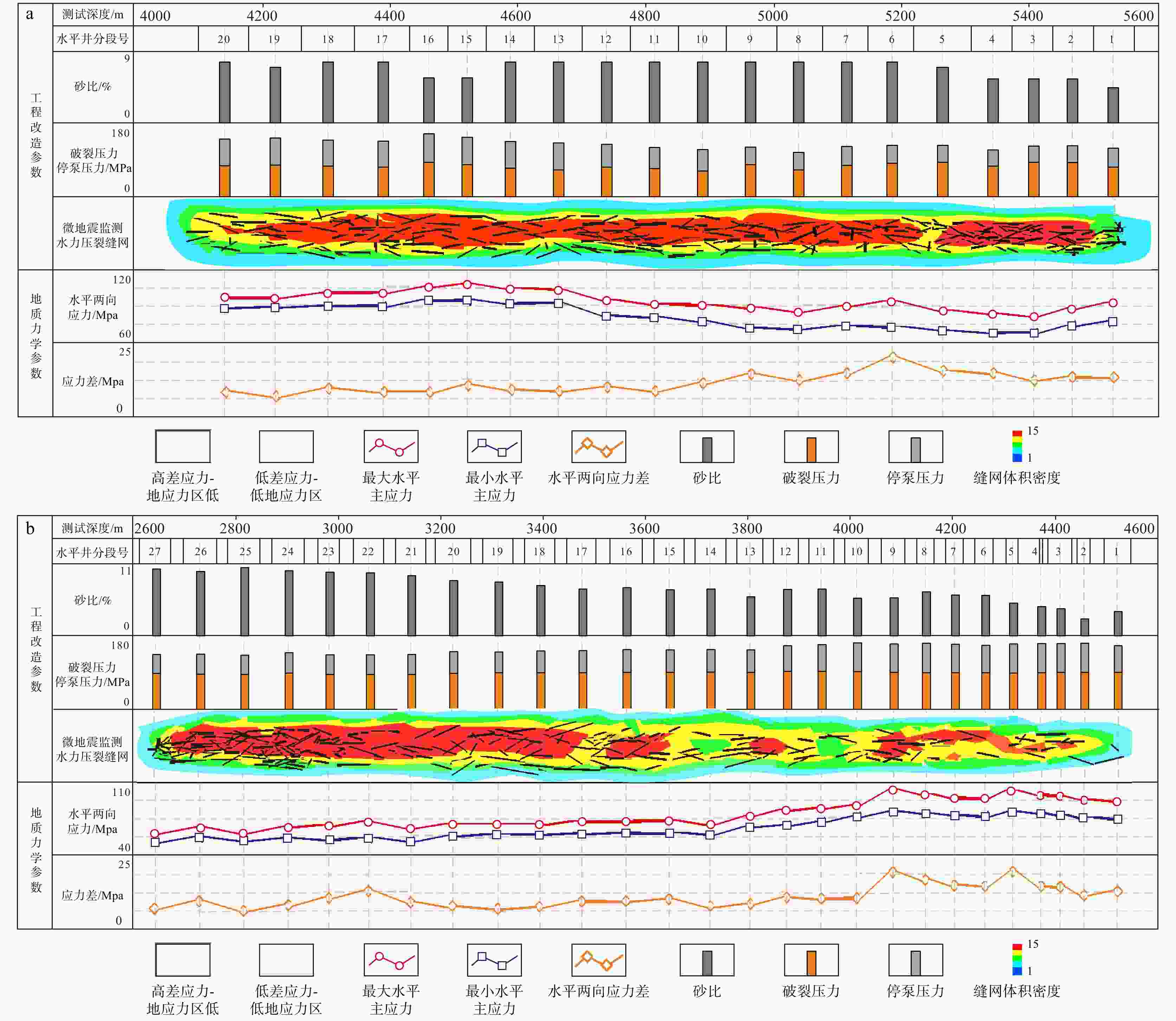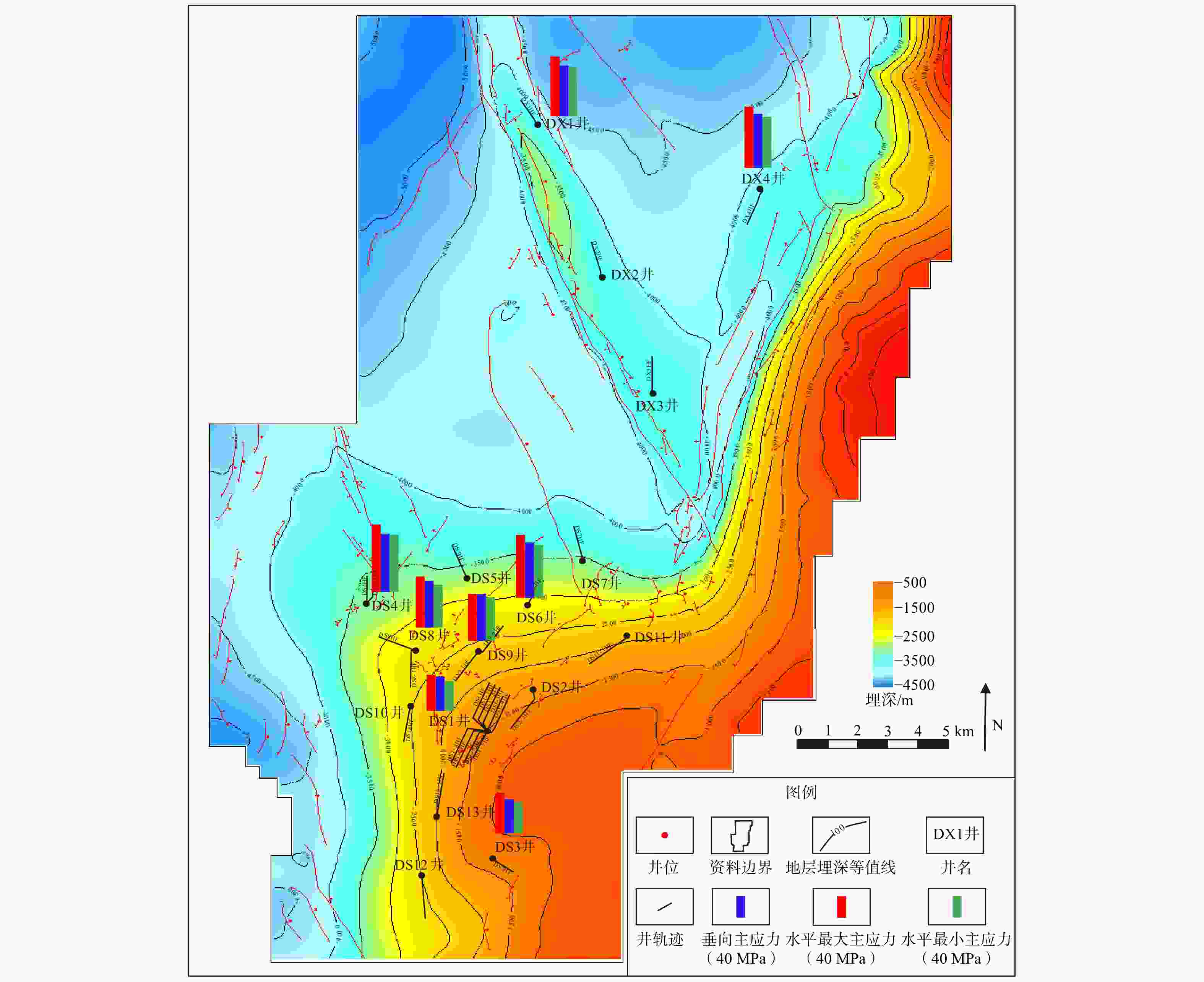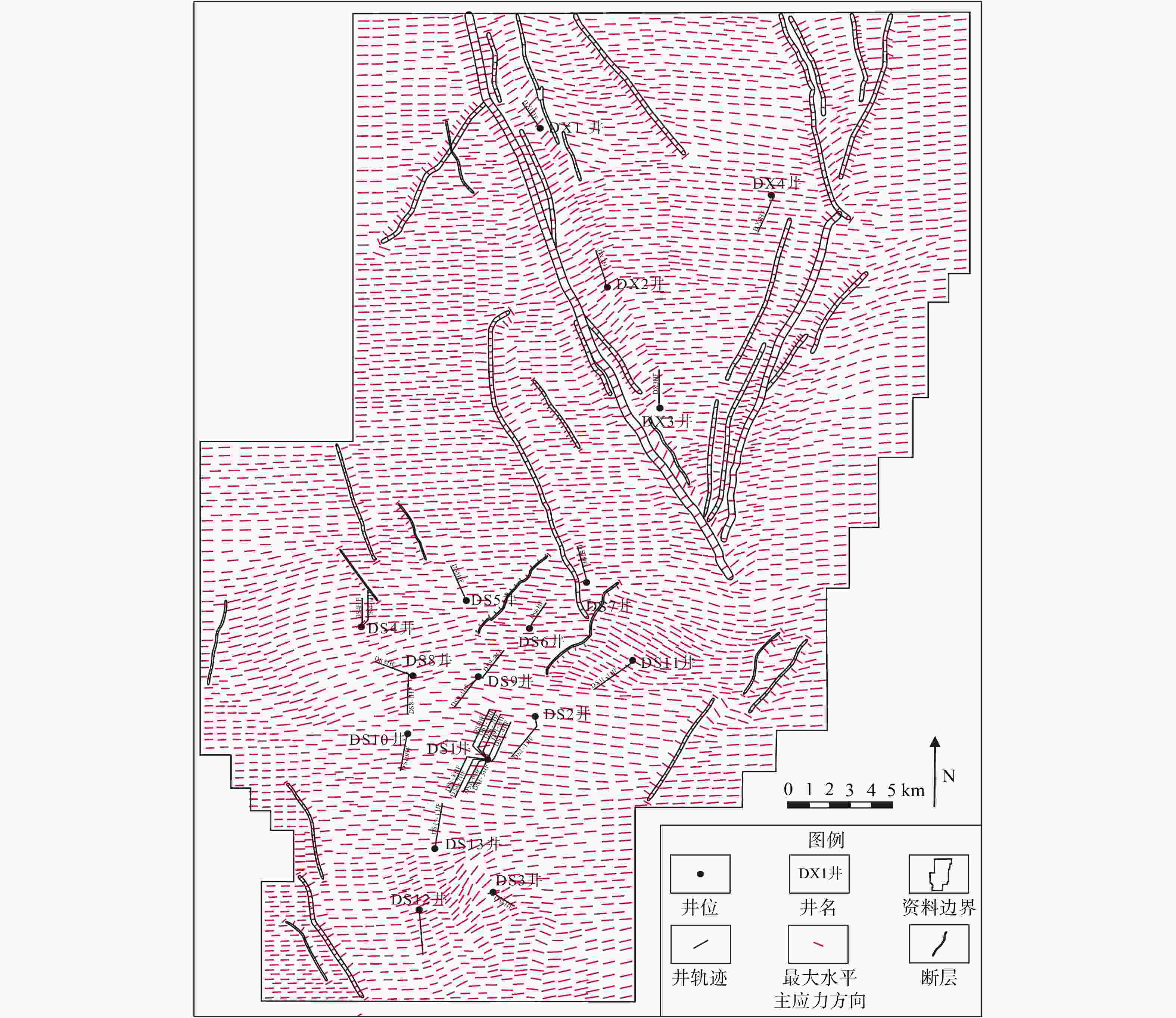 主应力/MPaDS9井 3441.24 3 83.69 88.77 76.49 DS9井 3444.60 3 86.70 87.07 81.00 DS9井 3449.02 1 90.18 94.09 83.62 DS9井 3451.34 1 94.56 104.87 77.66 DS4HF井 4395.00 3 108.00 125.00 106.00 DS6HF井 3966.00 3 103.00 117.00 98.00 DS3HF井 2180.00 3 63.00 74.40 58.00 DS1-3HF井 2413.50 3 64.00 73.50 61.50 表 4 丁山−东溪地区不同期次断裂内岩石力学参数赋值表