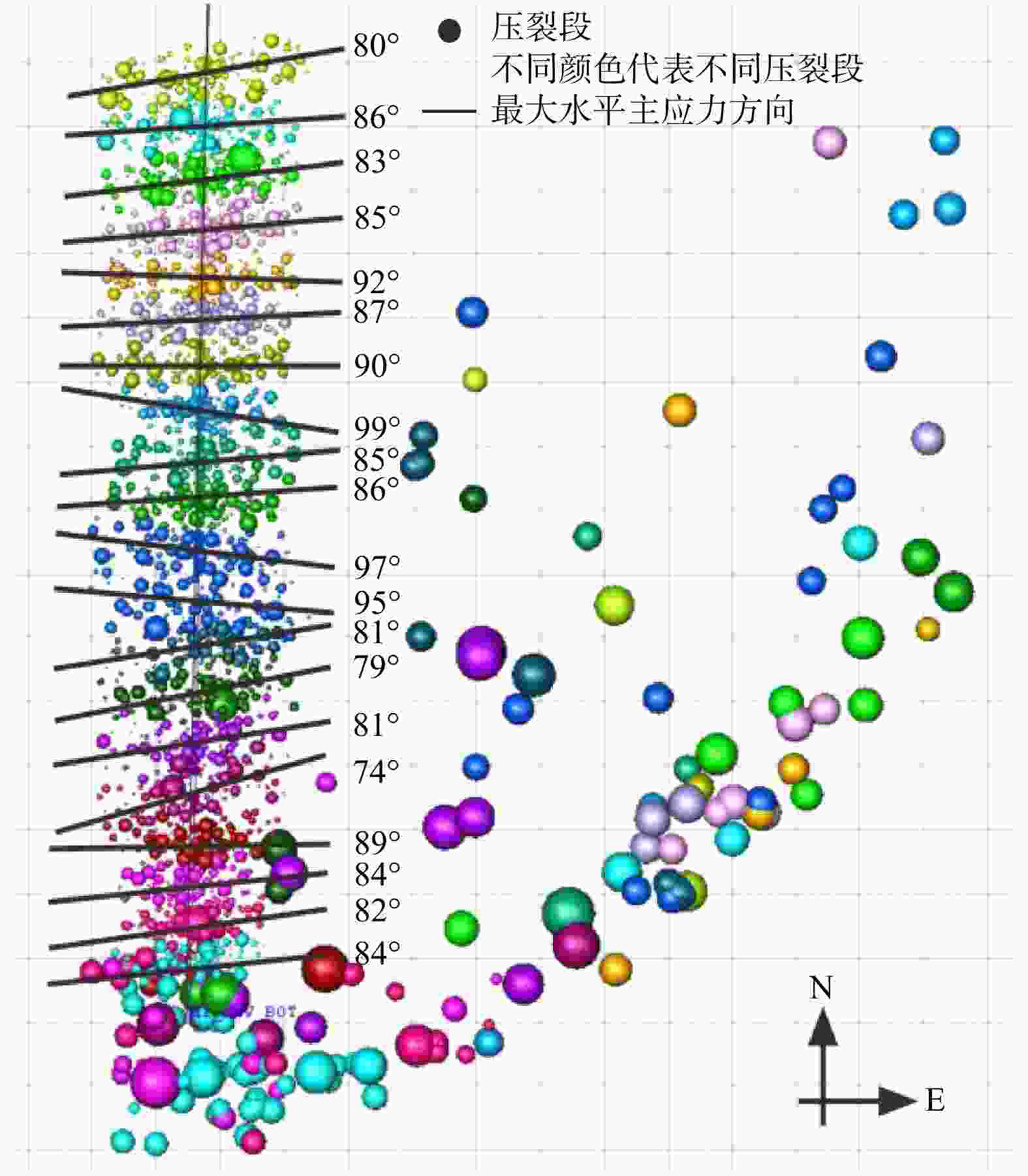 (MPa/100 m)最大主应力方向/