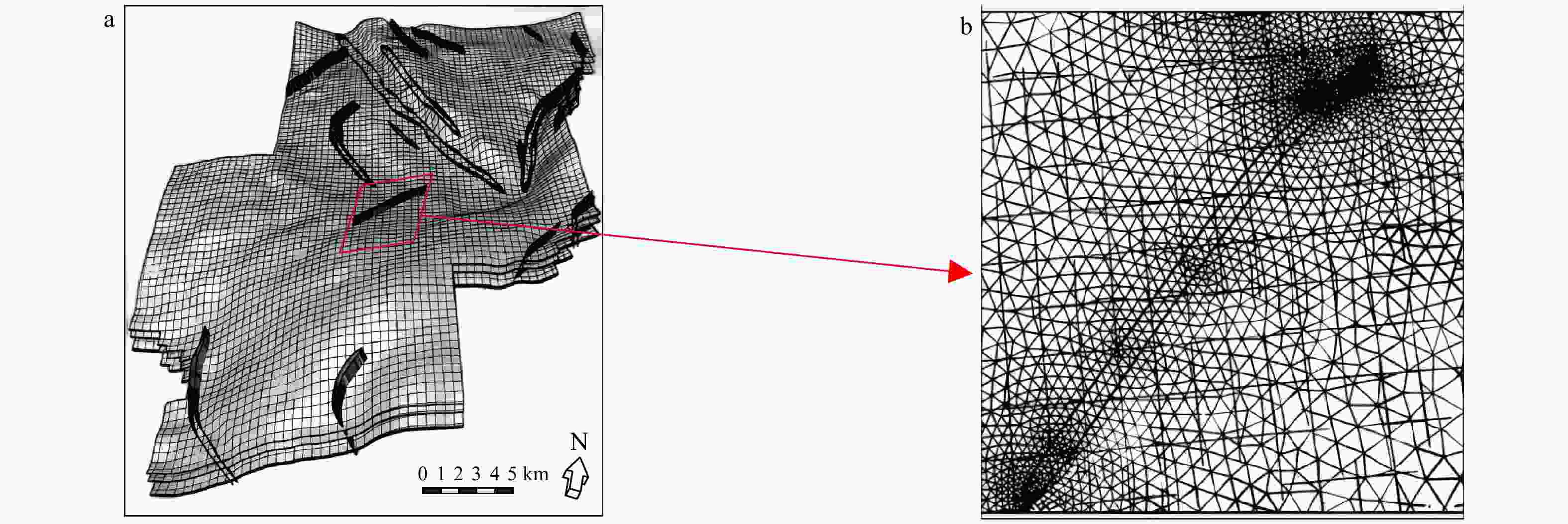 摘要: 川东南盆缘丁山−东溪地区位于川东断褶带与黔北断褶带交界处,受多期构造运动影响,构造特征复杂。区内志留系龙马溪组页岩气资源丰富,成藏条件优越,勘探开发潜力大,但现今地应力场情况复杂且平面预测精细低,导致水平井之间压裂改造效果与产量差异显著。因此,明确其现今地应力状态及其分布规律有助于提高页岩气开发效益。综合实验测试、测井及微地震等多源数据,精细解释研究区井剖面地应力方向;结合水力压裂、声发射实验与测井资料,明确了井剖面地应力大小特征分布;基于构造变形及断裂特征的精细化地质建模及非均质岩石力学属性赋值,应用数值模拟软件揭示了研究区现今地应力分布特征。在此基础上,分析现今地应力特征对压裂改造效果的影响,构建地应力分区评价标准;结合模拟结果,对丁山−东溪地区进行地应力分区,并依据新井压裂效果与应力状态的匹配关系验证分区效果。结果表明,研究区现今地应力方向多为近东西向,局部受断裂及构造变形影响发生偏转。最大水平主应力、最小水平主应力及垂向主应力分别为58.4~167.0 MPa、38.6~135.4 MPa和54.7~148.2 MPa,呈走滑应力状态;水平两向应力差主要介于5~30 MPa。地应力大小和水平两向应力差整体受控于埋深,在构造变形高部位,地应力及水平两向应力差均减小;断层附近地应力减小,但水平两向应力差增加。以最小水平主应力80 MPa和水平两向应力差20 MPa进行分区;建议选择丁山中部缓斜坡区构造高部位、东溪斜坡区和东溪断背斜区北部的低应力差−低地应力区进行压裂改造。研究成果深化了对川东南盆缘龙马溪组现今地应力场的认识,对压裂改造优化方面具有重要的实践价值。Abstract: