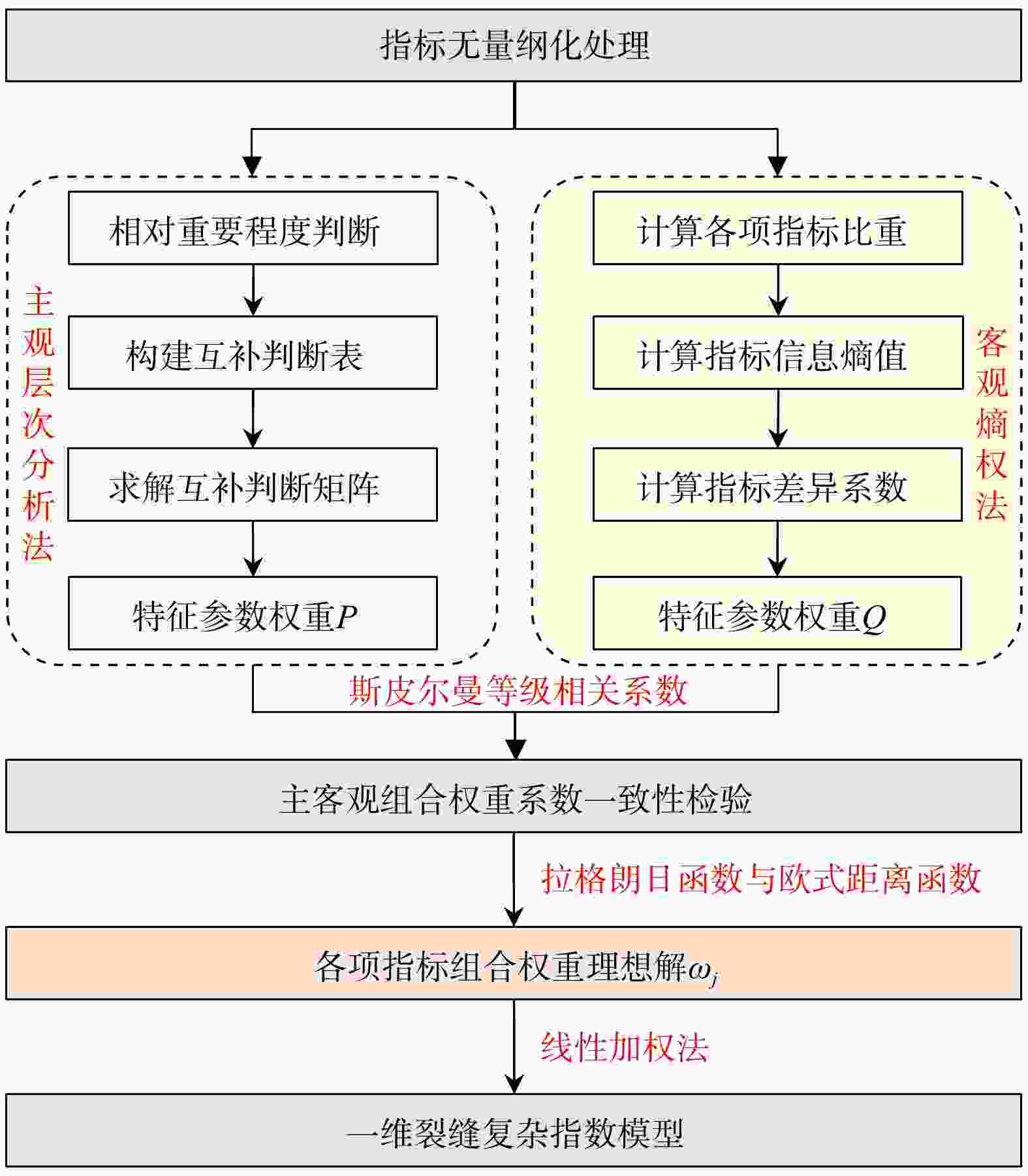 指标 权重系数 熵权法 层次分析法 组合赋权法 裂缝开度 0.4597 0.3333 0.3852 裂缝密度 0.5403 0.6667 0.6148 -