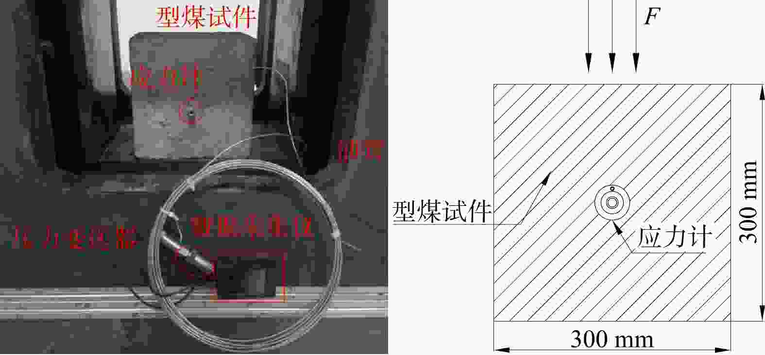 Figure  4.  Schematic diagram of the loading setup for the briquette specimen and the novel mining-induced stress gauge
