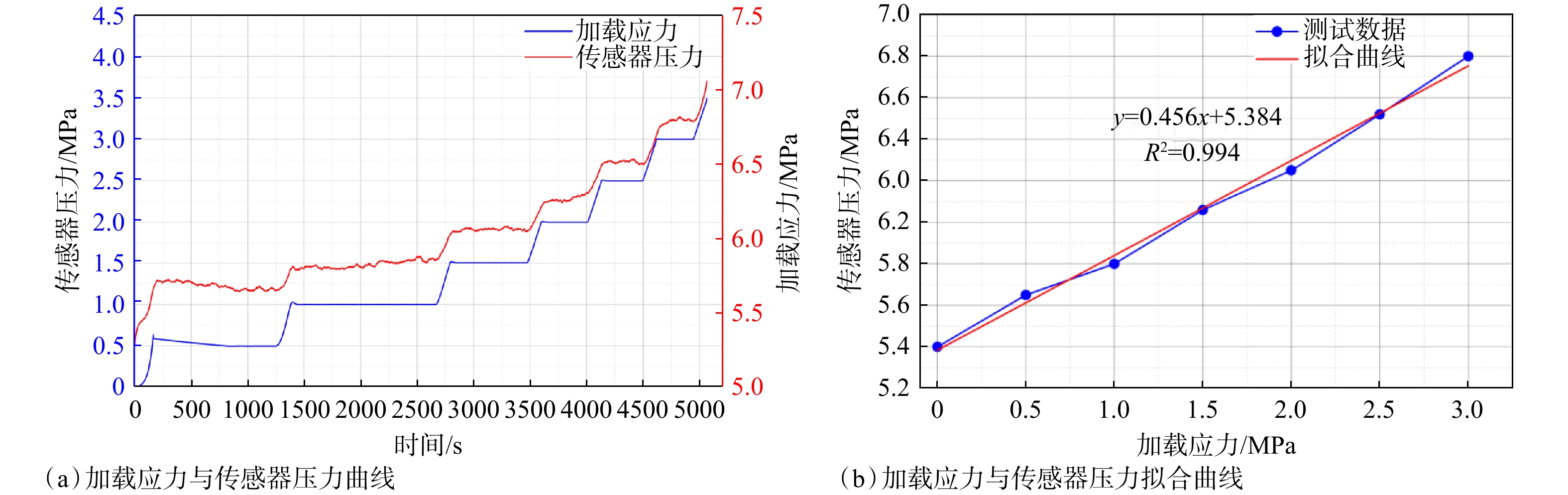 • 摘要: 随着煤矿开采深度持续向千米级推进,采动应力场的动态演化特征成为深部围岩稳定性控制与动力灾害预警的核心难题。为此,文章研发了一种新型体积式采动应力监测传感器,其通过圆柱形传感结构与钻孔围岩完全耦合,突破了传统设备的单轴测量局限,可实时监测围岩体微小变形引起的采动应力变化,显著提升了煤岩体等非均质介质中的采动应力监测敏感性与长期稳定性。实验室测试结果显示,传感器输出压力变化与轴向应力呈高度线性关系,灵敏度达0.456,优于传统应力计。在长期稳定性测试中,高、低应力环境下的压力波动均未出现持续漂移或数据跳变;温度特性实验揭示了温度与压力变化的线性关系,验证了温度补偿公式的普适性。在陕西彬长矿区雅店煤矿的现场应用中,该传感器成功捕捉到回采过程中与开采周期同步的应力波动;在顶板断裂等突发应力事件中,其响应速度与精度显著优于传统设备,且与微震监测数据具有强相关性;在金属矿山硬岩环境测试中,传感器亦展现出长期稳定的监测能力。试验及应用结果表明,该技术可高效捕捉动力灾害前兆信息,在深埋矿山采动应力监测及深埋隧道迟滞型岩爆预警等领域具有广阔应用前景。