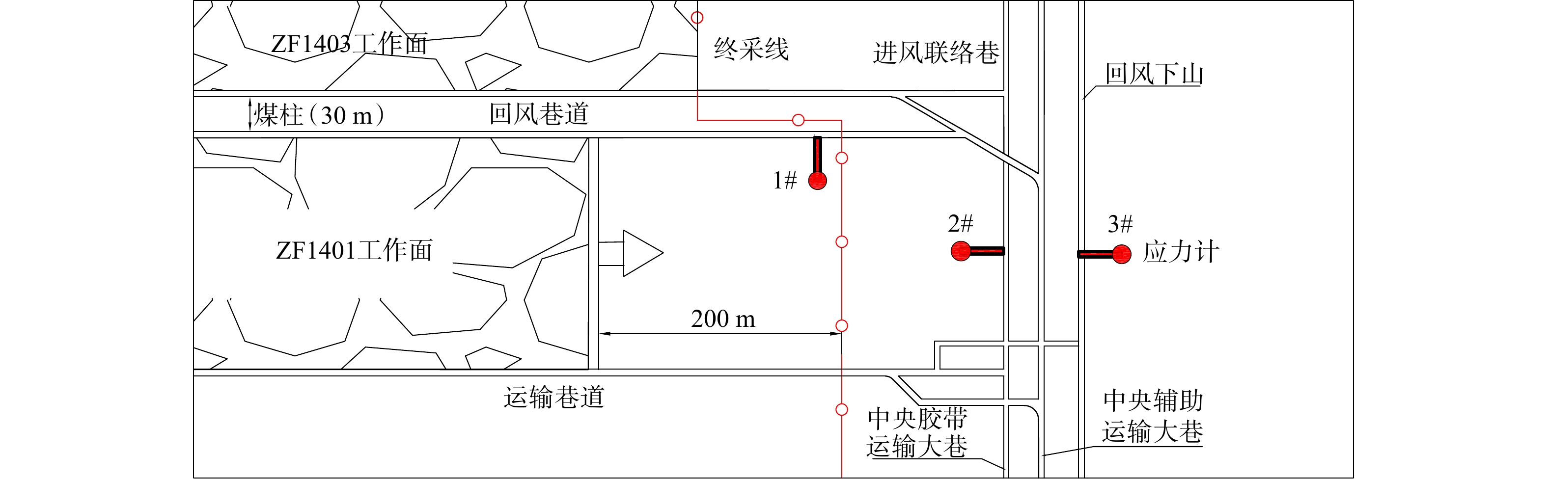 Figure  11.  Schematic diagram of the installation location of the stress gauge in Paishanlou Xinmin mining area