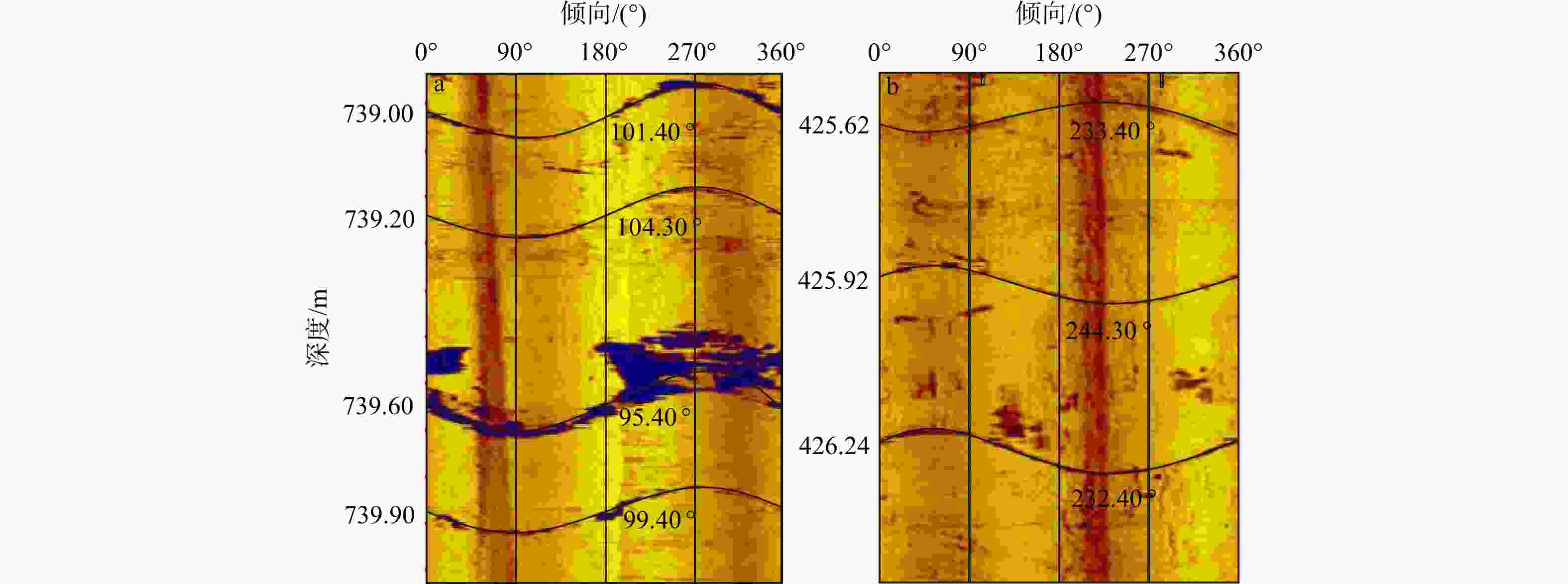 Figure 5. Typical images of drilling-induced tensile fractures and borehole breakouts in borehole SK1 and SK2