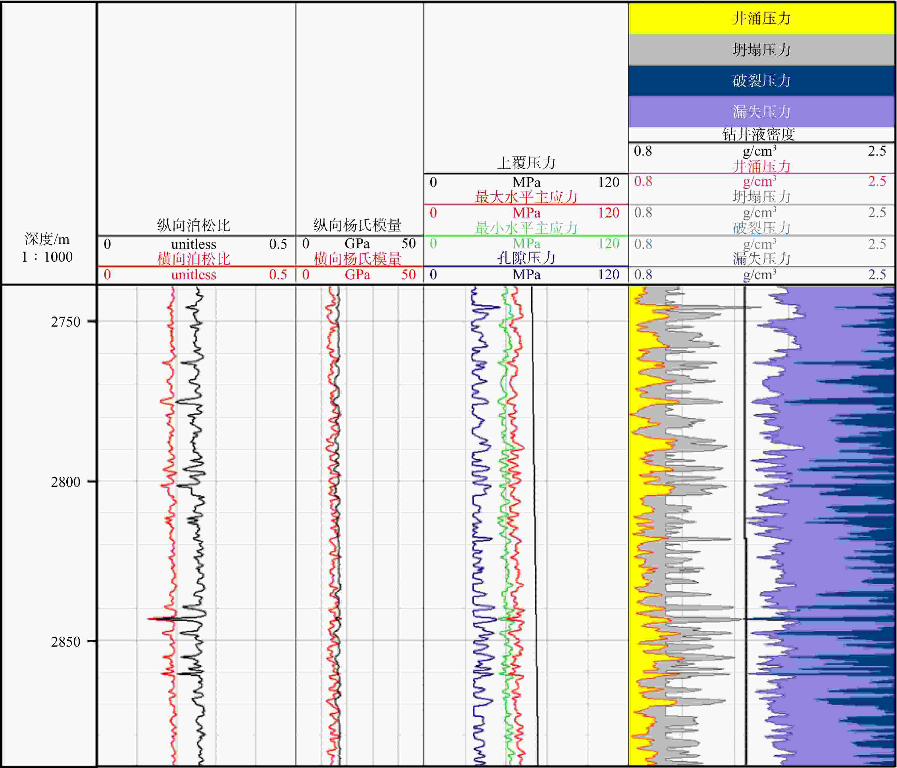 深度/m 孔隙压力/MPa 实测孔隙压力/MPa 误差分析/% 2799.80 33.56 32.16 4.33 2799.90 32.54 32.16 1.17 2800.00 31.71 32.16 1.41 2800.10 30.85 32.16 4.08 2801.00 31.71 32.17 1.42 2801.10 33.29 32.17 3.49 -