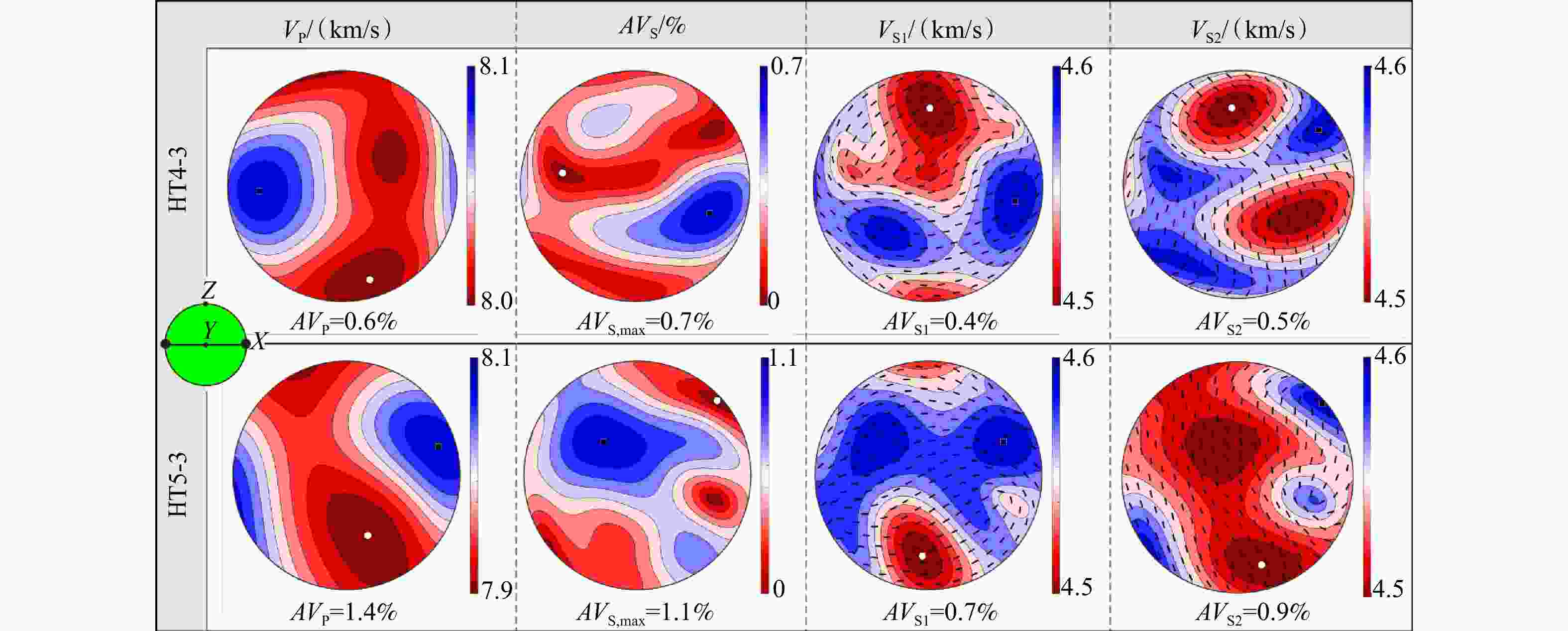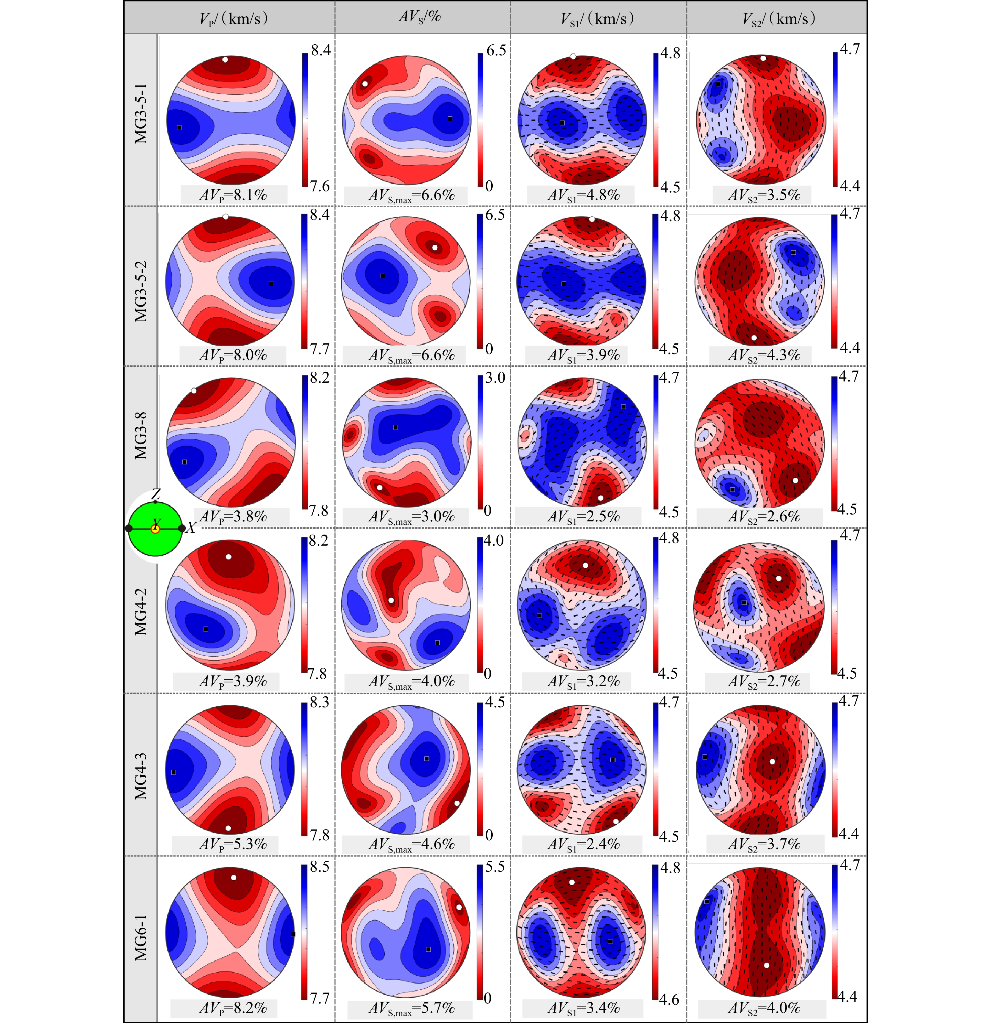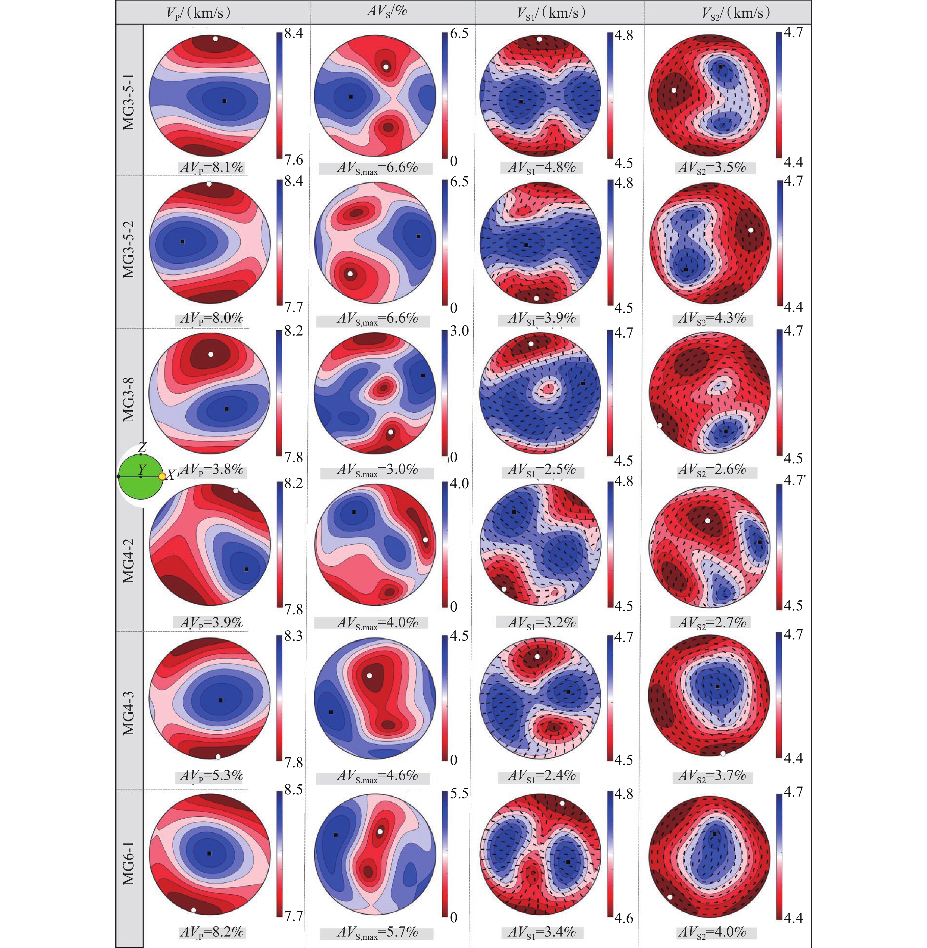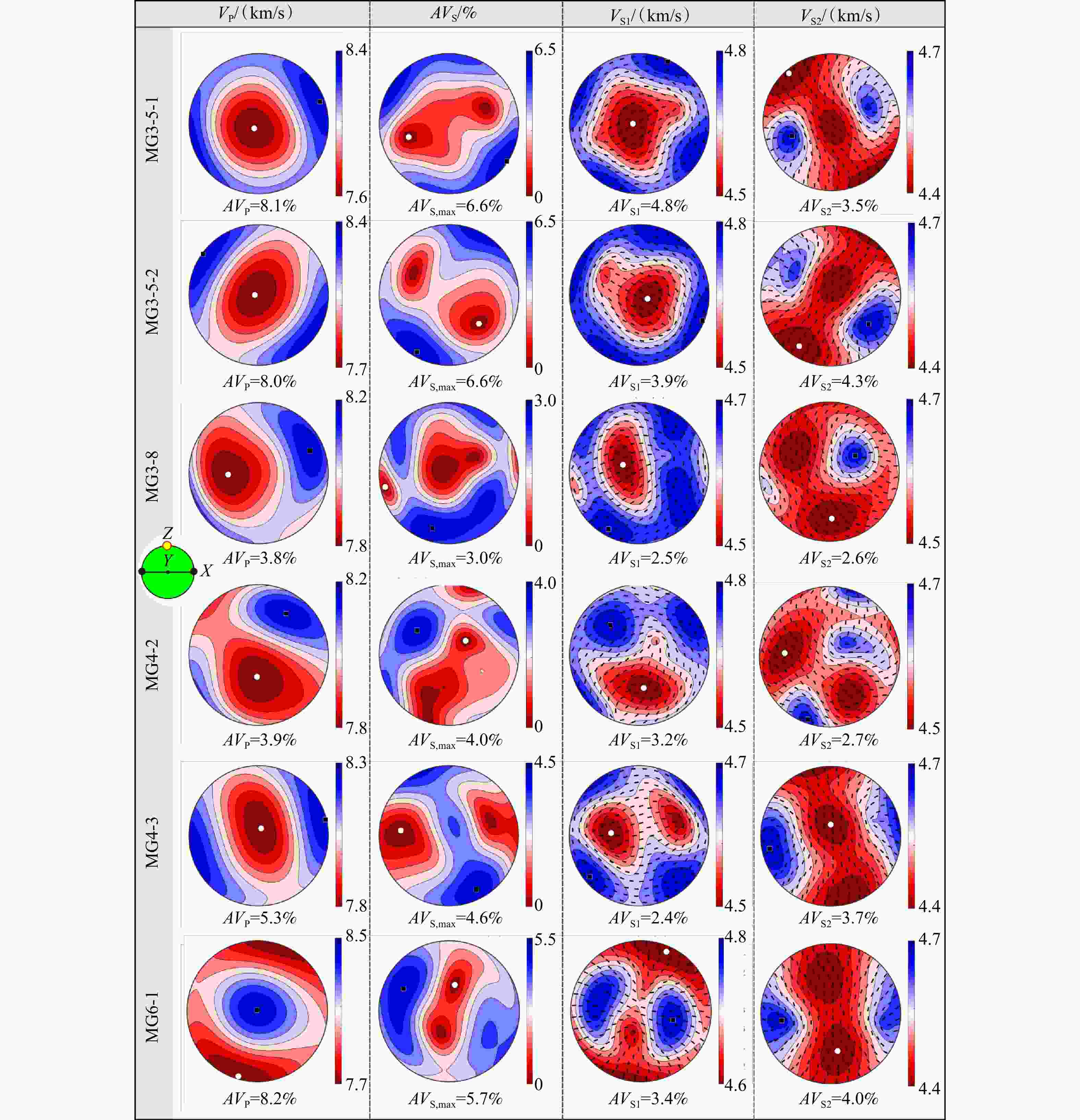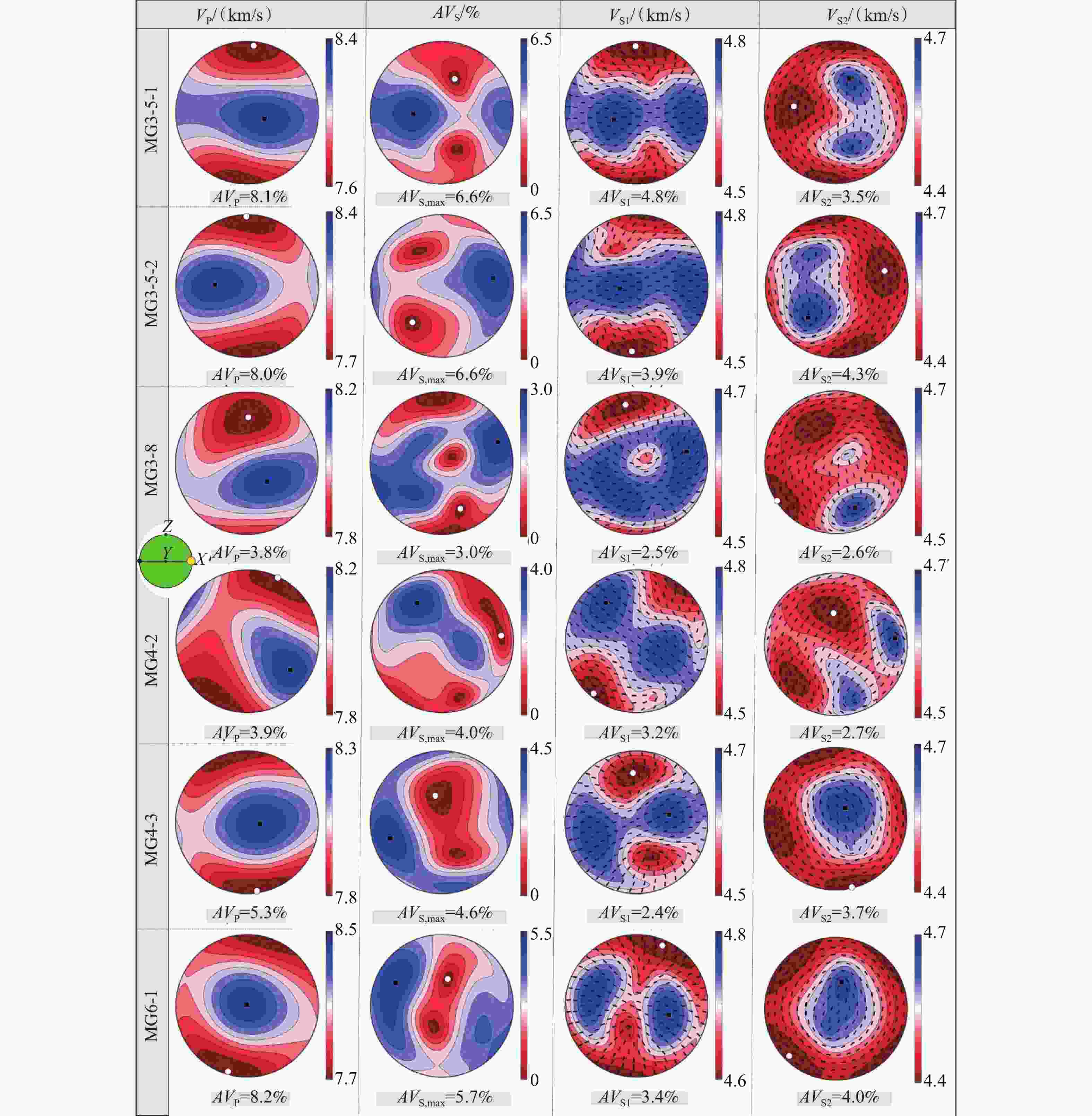 图  11  高原东南缘马关地区尖晶石二辉橄榄岩地震波速性质(地震波从Z轴入射)