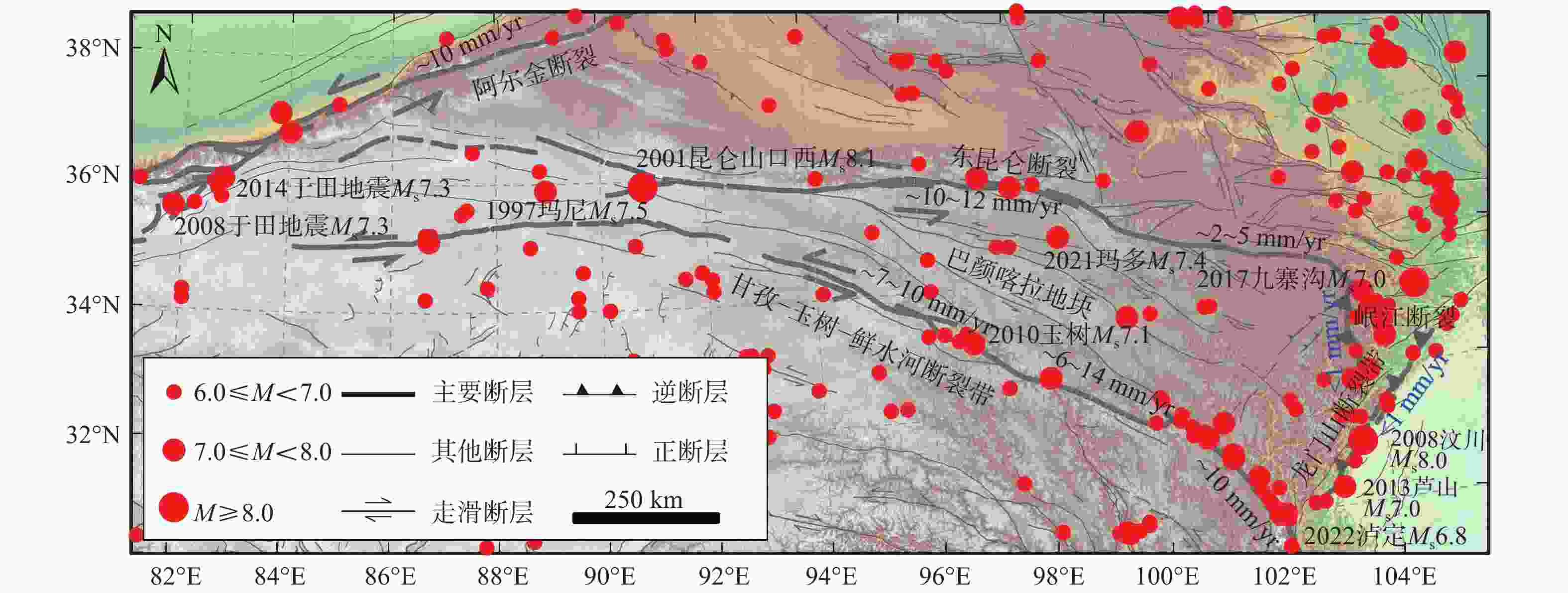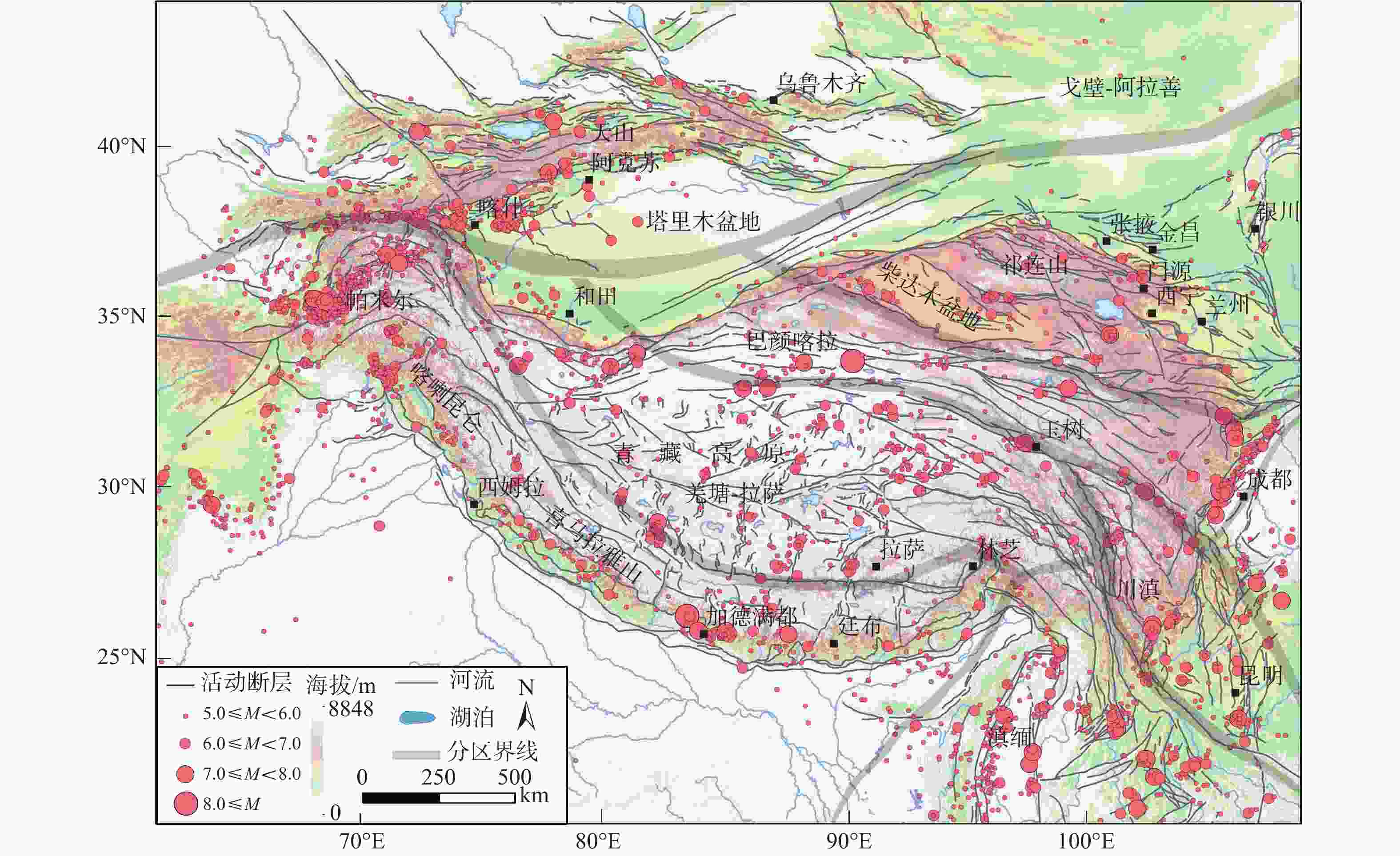 图中活动断裂基于邓起东等(2002)和吴中海(2019)等基础上修改完善,并增加了第二次青藏高原综合科学考察研究项目的最新成果;地震数据在中国地震台网中心(http://data.earthquake.cn)基础上,部分进行了重新定位