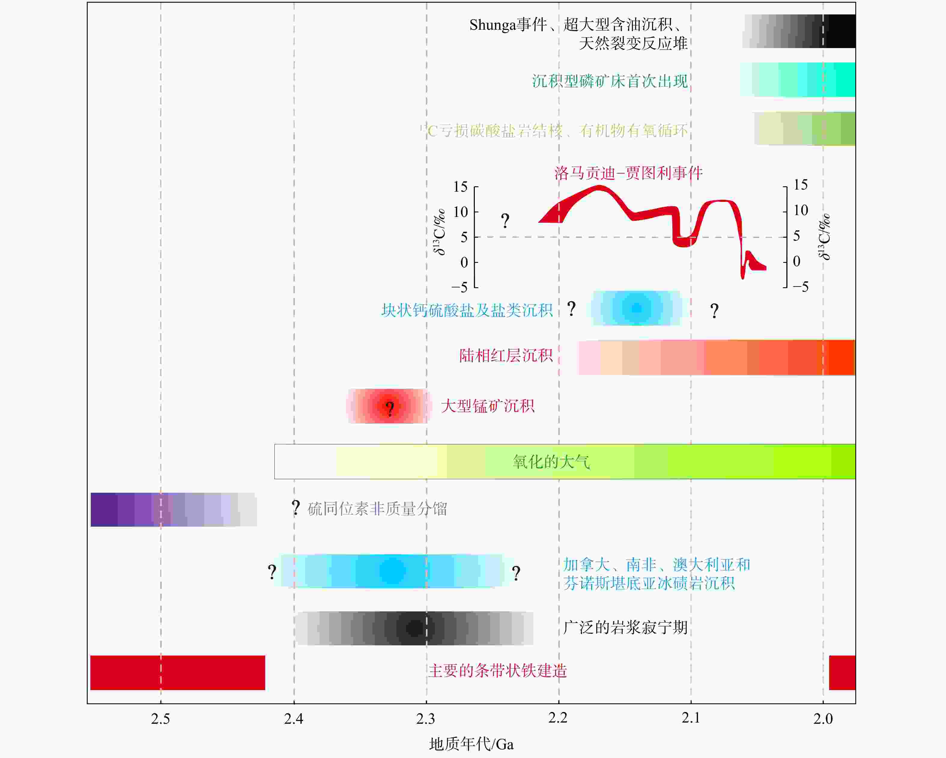 图 2 古元古代早期全球重大古环境及构造事件示意图(Melezhik et al.,2013)