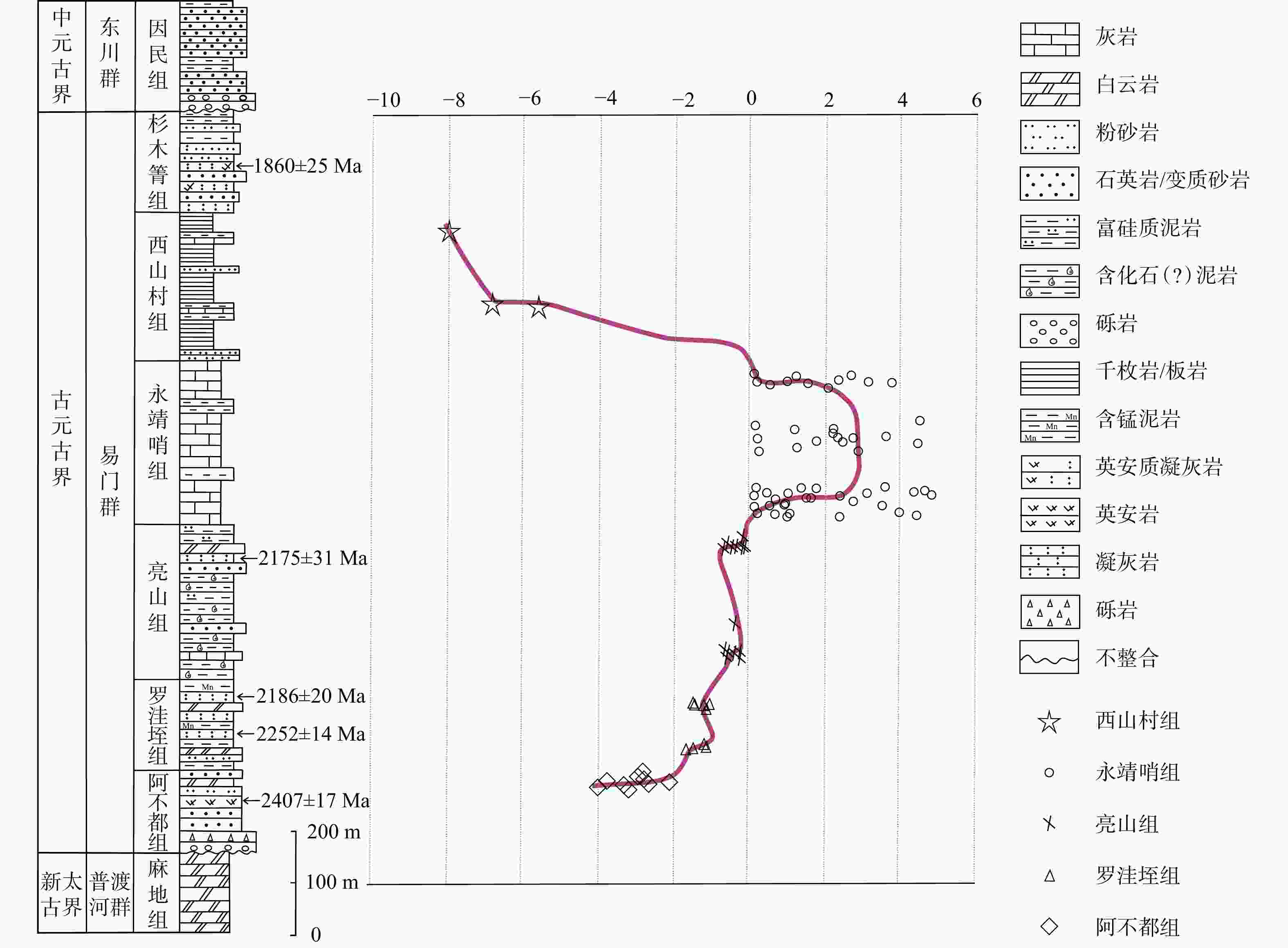 图 6 扬子克拉通西南缘滇中地区易门群地层柱及大理岩碳同位素曲线(据Liu et al.,2023修改)