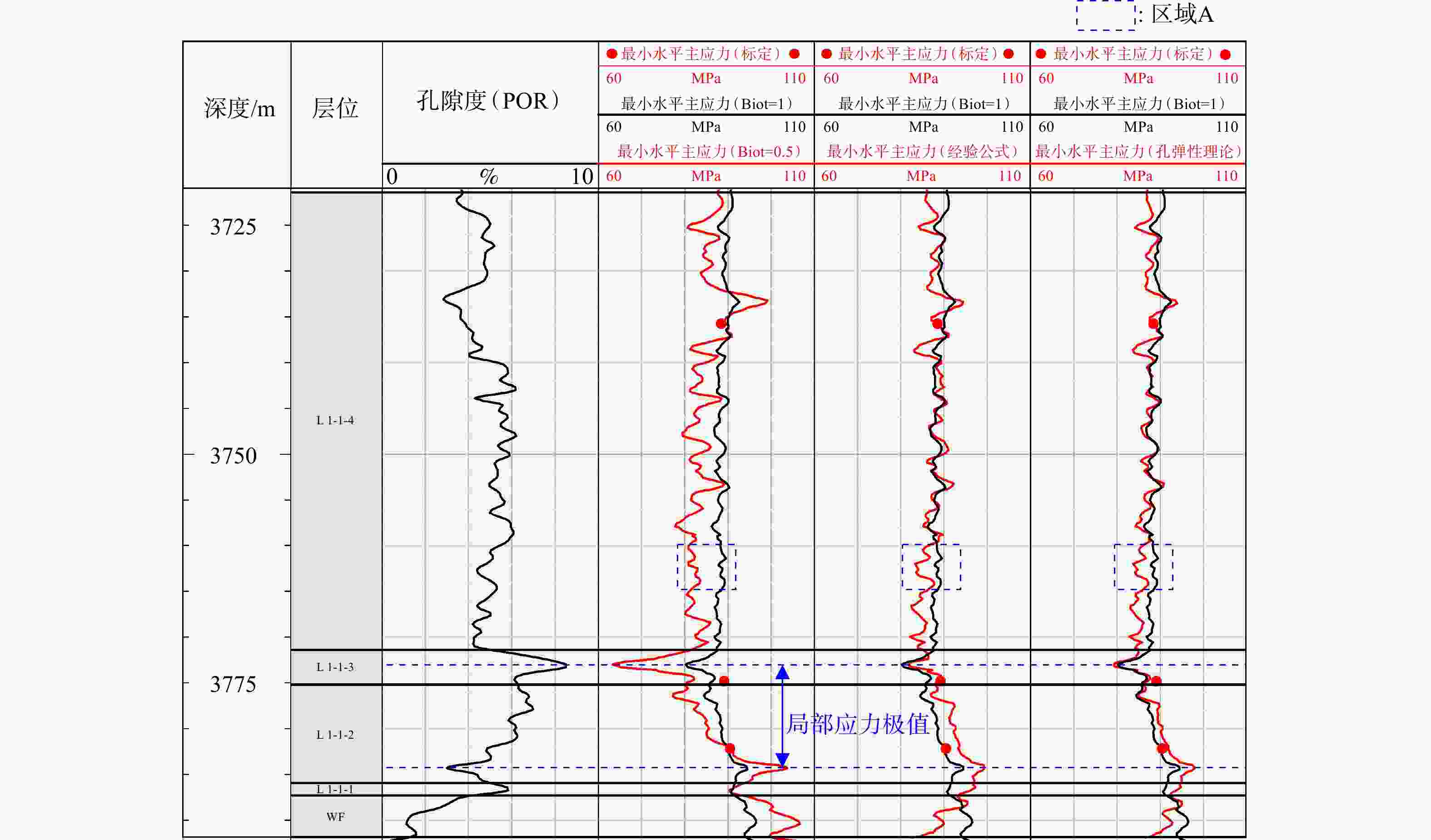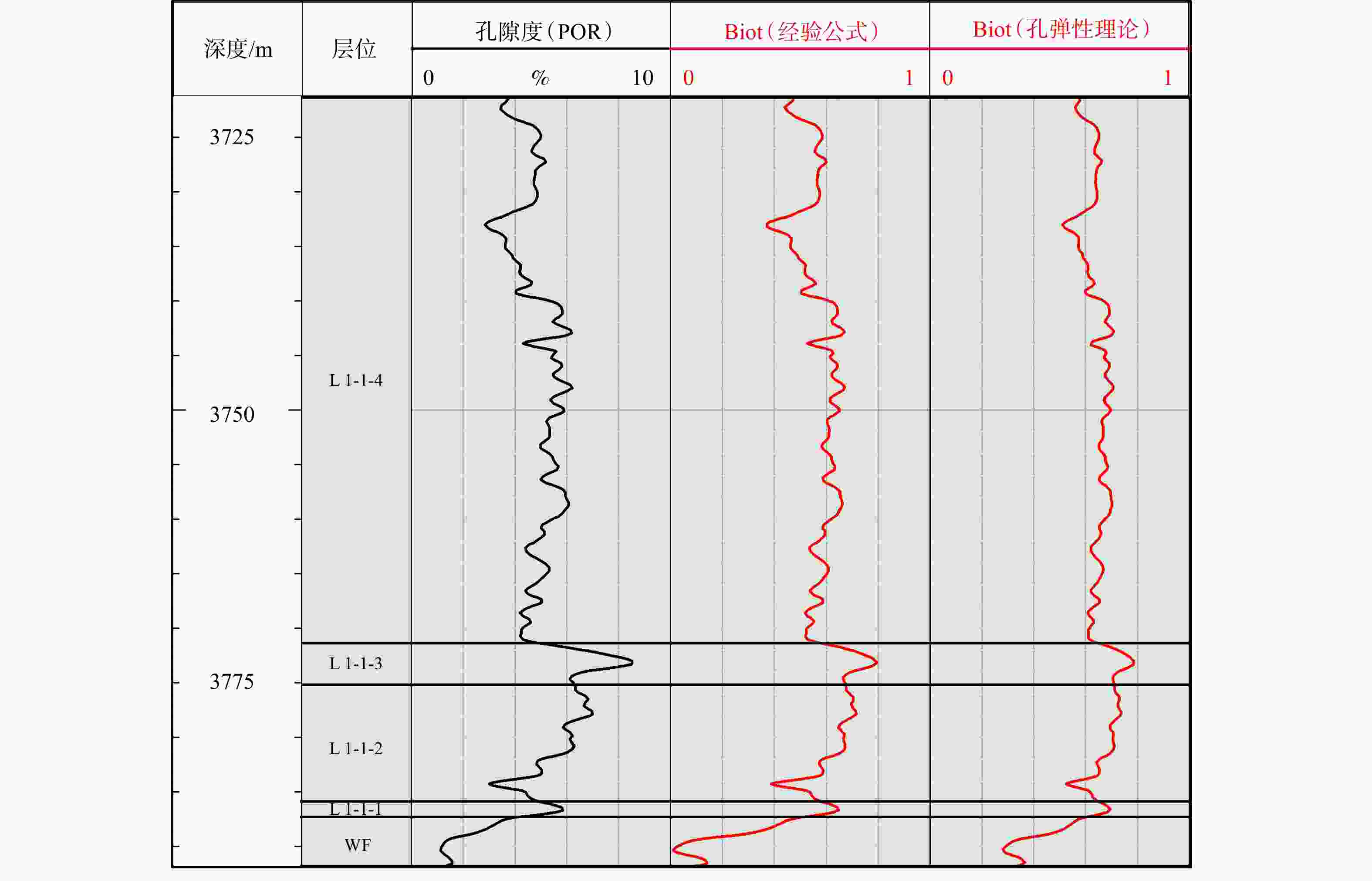 地层深度/m 最小水平主应力/MPa Biot=1 Biot=0.5 经验公式 孔弹性理论 3735.80 89.98 89.60 88.39 88.49 3774.84 86.41 81.37 88.79 87.05 3782.20 90.32 90.80 93.30 91.86 相对误差之和 0.0500 0.1035 0.0368 0.0393 表 4 基于不同Biot系数的各小层最小水平主应力平均值