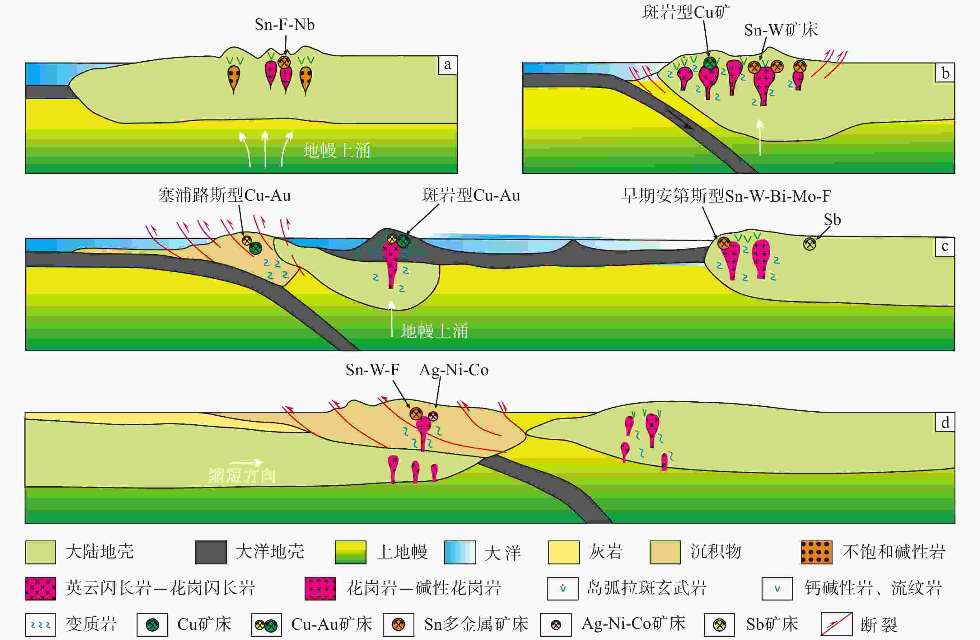• 摘要: 锡作为支撑信息产业、航空航天及国防科技等战略领域的关键矿产,其资源分布在全球极不均匀。开展全球主要锡矿产区对比研究,对理解锡矿成矿规律及全球锡矿勘查和开采具有重要意义。为了更好地理解不同构造背景下锡矿床形成的构造环境及不同类型锡矿床的构造控矿样式,通过系统梳理大陆裂谷和3种汇聚型板块边界典型的锡矿床产出构造环境,并总结了常见锡矿床的构造控矿样式,取得了如下认识:第一,针对热液流体中锡的迁移与锡石沉淀的数值模拟表明,成矿热液未被花岗质围岩完全缓冲是导致锡有效运移和局部富集的关键;这一过程必须依赖高效的构造通道才能实现,从而凸显了构造在热液锡矿成矿中的核心控制作用。第二,无论是在裂谷伸展、安第斯型大陆边缘挤压、西太平洋型大陆边缘弧后伸展以及碰撞造山后伸展哪种构造背景下,热液锡矿床成矿仍符合岩浆热液型锡矿成矿模型的一贯主张,即上述伸展背景下高分异的长英质岩石主导锡成矿作用,伸展/张扭性构造背景有利于热液锡矿床形成。此外,近年部分学者报道了同增生造山过程中变质作用导致锡的预富集,并详细揭示了进变质过程中锡的活化和退变质过程中黑云母绿泥石化释放Sn形成锡石的过程。上述研究为碰撞造山型锡矿成矿理论发展奠定了基础。第三,岩浆热液型锡矿床以矽卡岩型和石英脉型锡矿床为主,通常二者常伴生出现。成锡岩体内部及周缘发育含锡的岩浆冷凝收缩裂隙、水岩分离裂隙、岩浆侵位挤压裂隙和区域构造应力叠加裂隙等。远离成锡岩体受岩石流变学差异或断裂(切层断层和顺层断层)的强烈控制,形成多样的矿化网络结构。根据矿化网络结构内是否发育角砾,可以把含矿脉分为2类。一类是不发育角砾的容矿构造,按复杂程度逐渐增加分为单脉、单脉复合系统、“非”字型脉系统、对称复合脉系统和不对称复合脉系统。单脉的形态及延伸与容矿构造力学性质关系密切。另一类是发育角砾的容矿构造,按复杂程度逐渐增加分为产于剪切带内对称脉、角砾脉系统、脉与顶板网脉复合系统、多角砾脉复合系统。构造序次和构造分异的厘定对热液锡矿床构造控矿作用的研究具有重要作用,加强典型矿床/矿集区构造序次和构造分异的精细填图并结合数值模拟和岩石流变学实验研究是热液锡矿床构造控矿作用研究的发展方向。