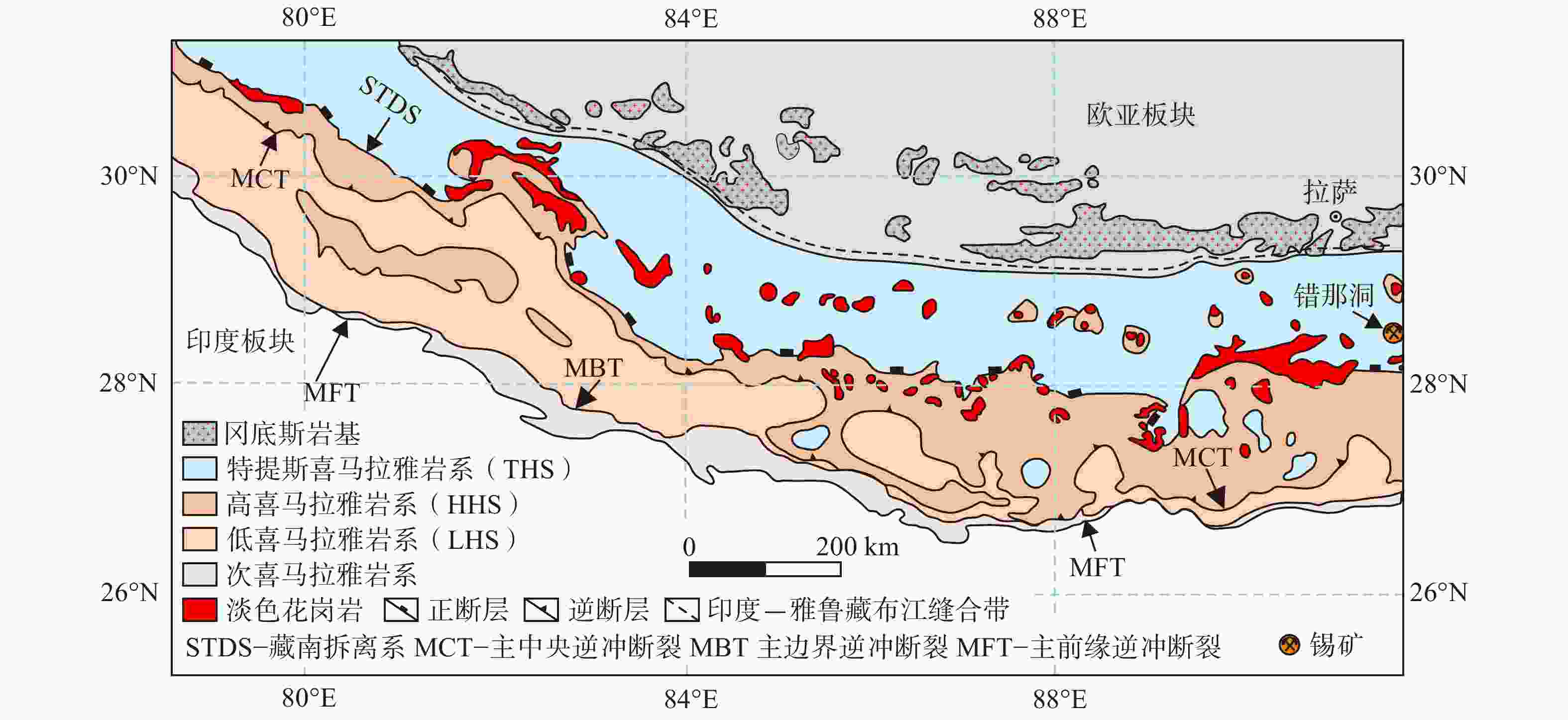 图  6  喜马拉雅造山带区域构造与错那洞锡钨铍矿床位置图(据吴福元等,2015修改)