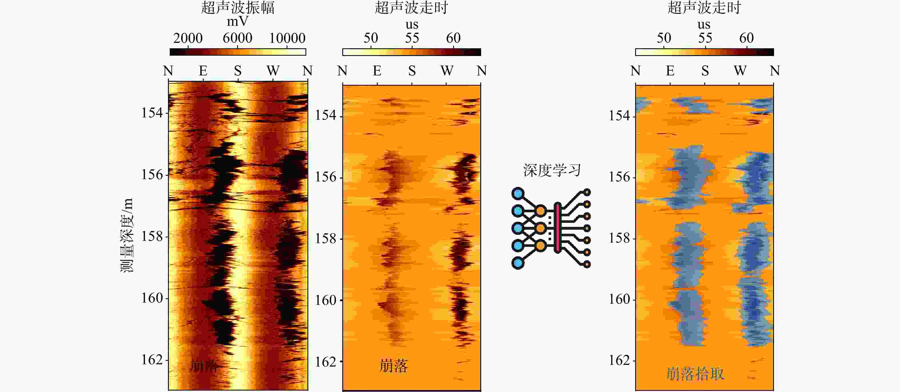 超声波成像测井的振幅、走时数据,通过深度学习手段自动拾取崩落等地应力指示物信息
