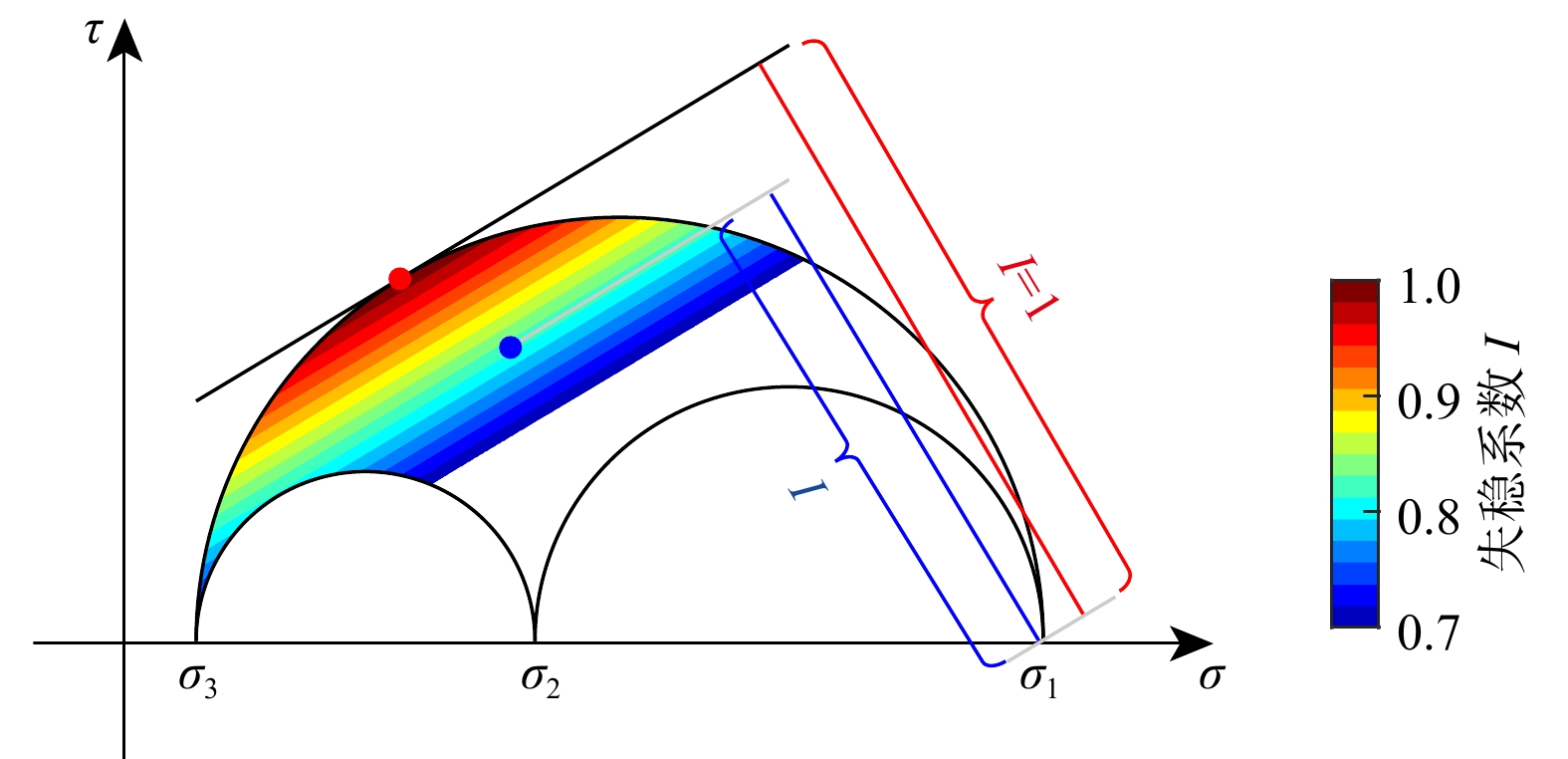 广西盘龙铅锌矿是桂中地区重要的多金属矿产资源,其深部开采受岩体结构面和地应力场控制显著。为系统评估盘龙铅锌矿深部结构面的稳定性,揭示高地应力与构造裂隙耦合作用下的滑动机制,保障深部矿山开采安全,采用超声波钻孔电视与水压致裂技术获取SK1与SK2钻孔的结构面与地应力数据,结合Sheorey模型与应力张量变换方法,计算结构面上剪应力与正应力,基于摩擦滑动准则对2948组结构面进行稳定性评价。结果表明:矿区岩体结构面以陡倾角为主,优势倾向为北西-北北西和北东-北东东。在500~850 m深度范围内,三向主应力值分别SH:28.29~44.69 MPa,Sh:19.46~27.09 MPa,Sv:14.50~22.68 MPa,SH方向为北西-北北西,Sh方向为北东-北东东。侧压力系数平均值为kH = 2.07、kh = 1.28,表明三向主应力关系为SH>Sh>Sv,水平应力占主导地位,现今构造应力场以北西向挤压为主,与区域构造应力场方向一致。北西-北北西向结构面群在当前高应力环境下具有较高的剪切再活化风险,尤其是滑动潜势Ts大于0.20且裂隙宽度大于10 mm的结构面,应作为重点监测与加固对象。研究成果可为深部开采巷道布设优化、支护设计及灾害防控提供科学依据。
