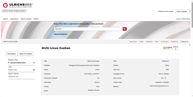 《地质力学学报》在Ulrichsweb库中的期刊主页截图