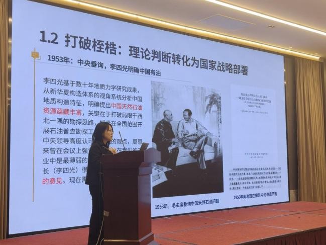 报告会上,李四光纪念馆办公室副主任赵曼以“李四光科学思想与中国海洋石油事业开拓”为题作报告,从地质力学理论出发,系统介绍了李四光指导中国海洋石油事业开拓的奠基之路,结合深海油气等源勘探实践及时代要求,阐释了李四光科学思想的时代价值。